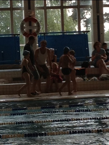 Pappa M är funktionär. Det verkar gå i arv det här med simning. Jag tror faktiskt att han tycker det är ganska kul!