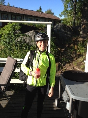 Cykla… vad hungrig jag är! Nu vet jag vad vi ska äta!!! Vi måste ju äta upp salladen och så har vi räkor kvar i frysen. Undrar om Magnus har maten klar när jag kommer hem… Jag måste nog ringa och kolla… Äh han hade allt under kontroll. Det blir grillning.