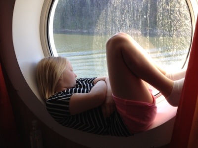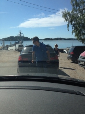 Nu ska vi i alla fall åka resans andra färja Viken. Så här står vi tillsammans med familjen Lindborg (Tomas, Lena, Elsa och Elias), och på andra sidan står familjen Holm (Peter, Catharina, Erik och Lovisa).
