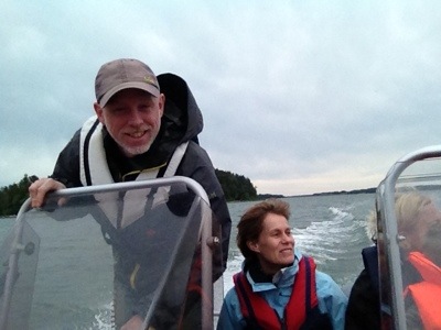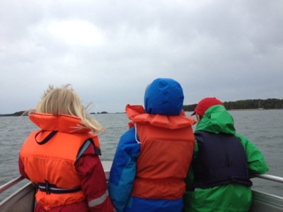 Utflykt till en öde ö. Lina, Tove och Erik i fören