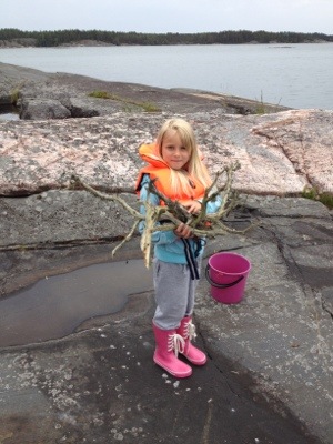 - Utslagstävling, langa vatten, från havet ner i en hink tills den tippade. Klurigt med tanke på att en av langningsverktygen var en tratt! Vi föräldrar förlorade tyvärr denna trots att vi (framför allt mammorna) kämpade bra!
