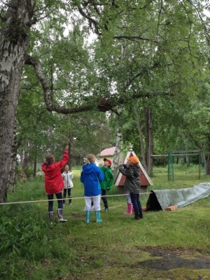 - Vedstapling, stapla lika högt som den längsta deltagaren i laget (barnen vann)