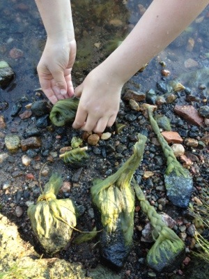 Medan vi gjorde det passade barnen på att bada och göra sjögräsfrisyrer på stenarna i vattnet, coolt!