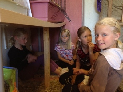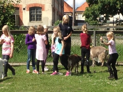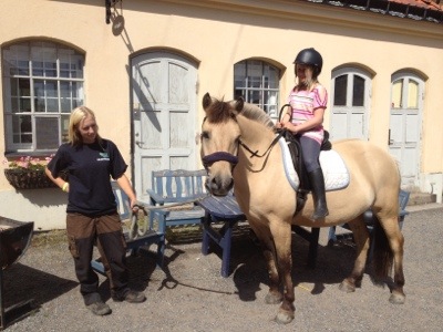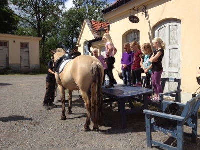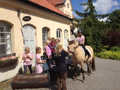 Barnen fick börja med att rida en liten bit var. Efter det fick de gå runt i hagarna bland de andra djuren och klappa getter, får, minigrisar, kaniner, marsvin, höns och katt.