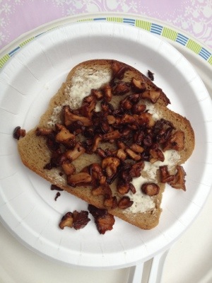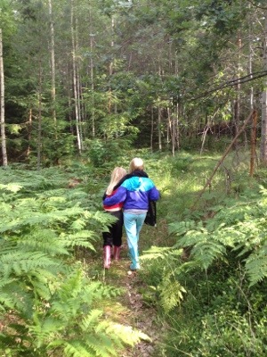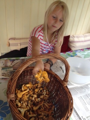 Efter badet tog jag och tjejerna en sväng till skogen för att se om det skulle gå att hitta tillräckligt mycket Kantareller så att vi kunde göra en Kantarellmacka som förrätt idag.