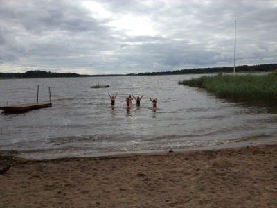 Efter fikat tog vi löpare en dusch och barnen var nere vid sjön och badade