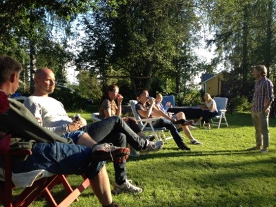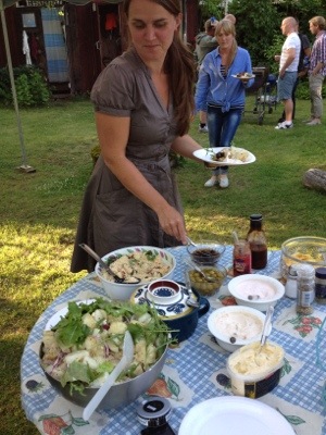 På kvällen bjöds det på god grillspettsmiddag med Marängsviss till efterätt. Vi trotsade myggen och satt ute till sena natten innan vi kröp in i stugor och tält. Vilken dag! Underbart!