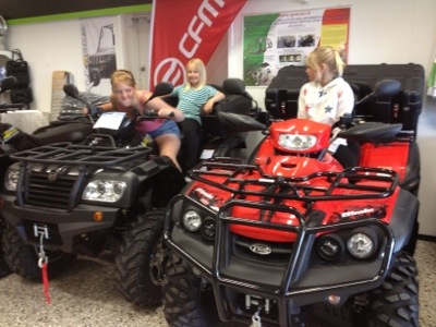 Erik ville in och titta i en ny motoraffär. Där hittade tjejerna lite leksaker som dom ville köpa:-)