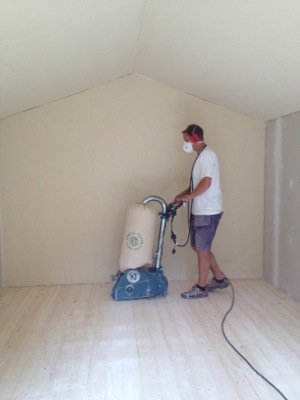 …och hyrt en golvslip som Magnus har slipat av golvet med så det blev snyggt igen…