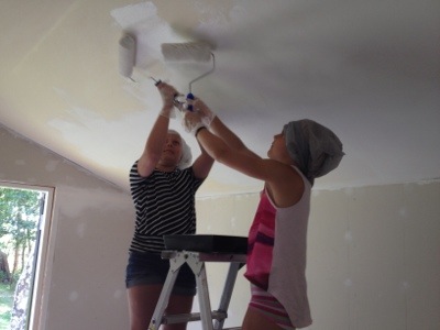 …Tove, Lina och jag har målat tak i snygga skyddsmössor:-)…