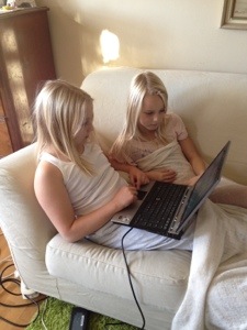 …ja, helt rätt! De håller på med datorn, samtidigt som barnprogrammen står på och skriker på TV!