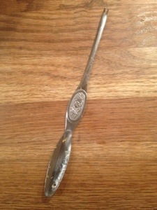 Vi använde ett sånt här ”kräftätarverktyg”. Det fungerade hur bra som helst. Mycket lättare att använda i svängar än kniv.