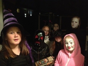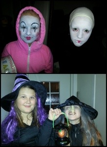 Tove har varit ute med sina kompisar. Grannen Moa stod för proffssminkningen. Så här läskiga var de!