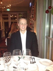 De hade börjat servera julbord så stämningen var på topp! Bordet bakom mig skrålade ”Helan går, sjung hopp faderallan leeeeej!” och verkade ha väldigt roligt. Mot slutet hade de dock väldigt svårt att ta sig fram och tillbaka till julbordet. Kvar på bordet efter dem stod två helrör nästan helt orörda. Det blev nog aningens för mycket för dom kan man säga:-)