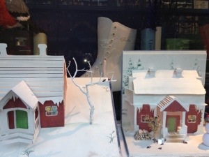 Efter frukost gick vi in till stan igen för att fixa lite ärenden. På vägen hann vi med att se julskyltningen utanför NK. Bilden är från fönstret med Bullerbytema. På skridskon i bakgrunden står det Britta och det heter ju min mamma så jag var tvungen att ta kort på det:-)