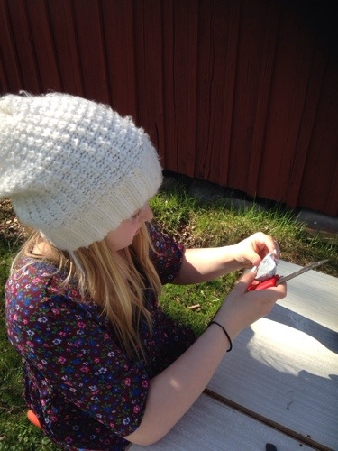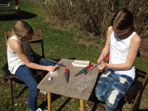 På eftermiddagen åkte vi ut till Löten igen och njöt av solen. Tjejerna hittade lite täljstenar som dom snidade till fina konstverk.