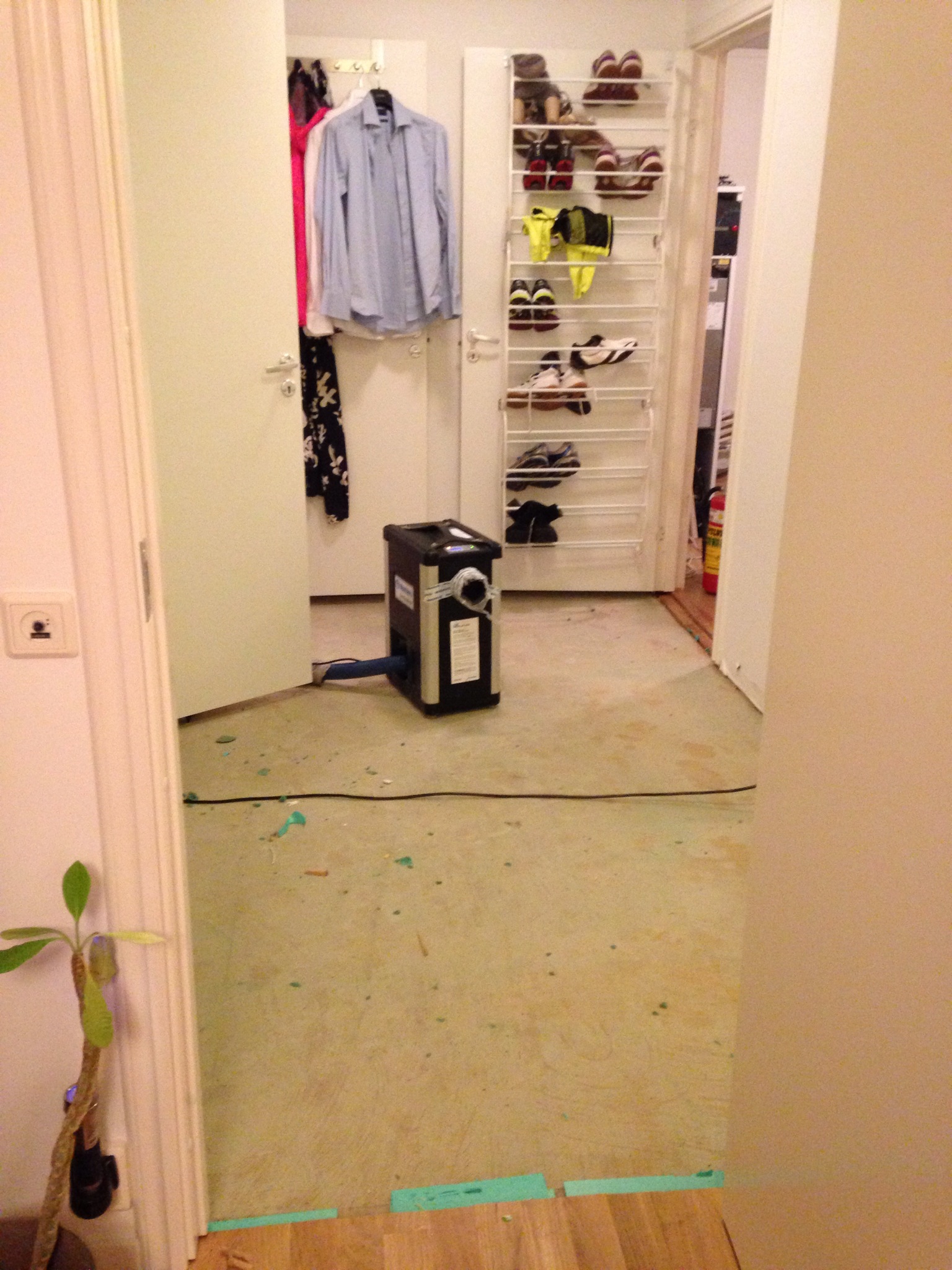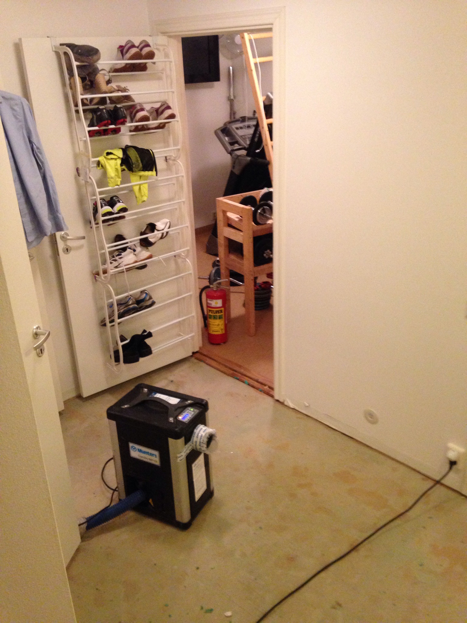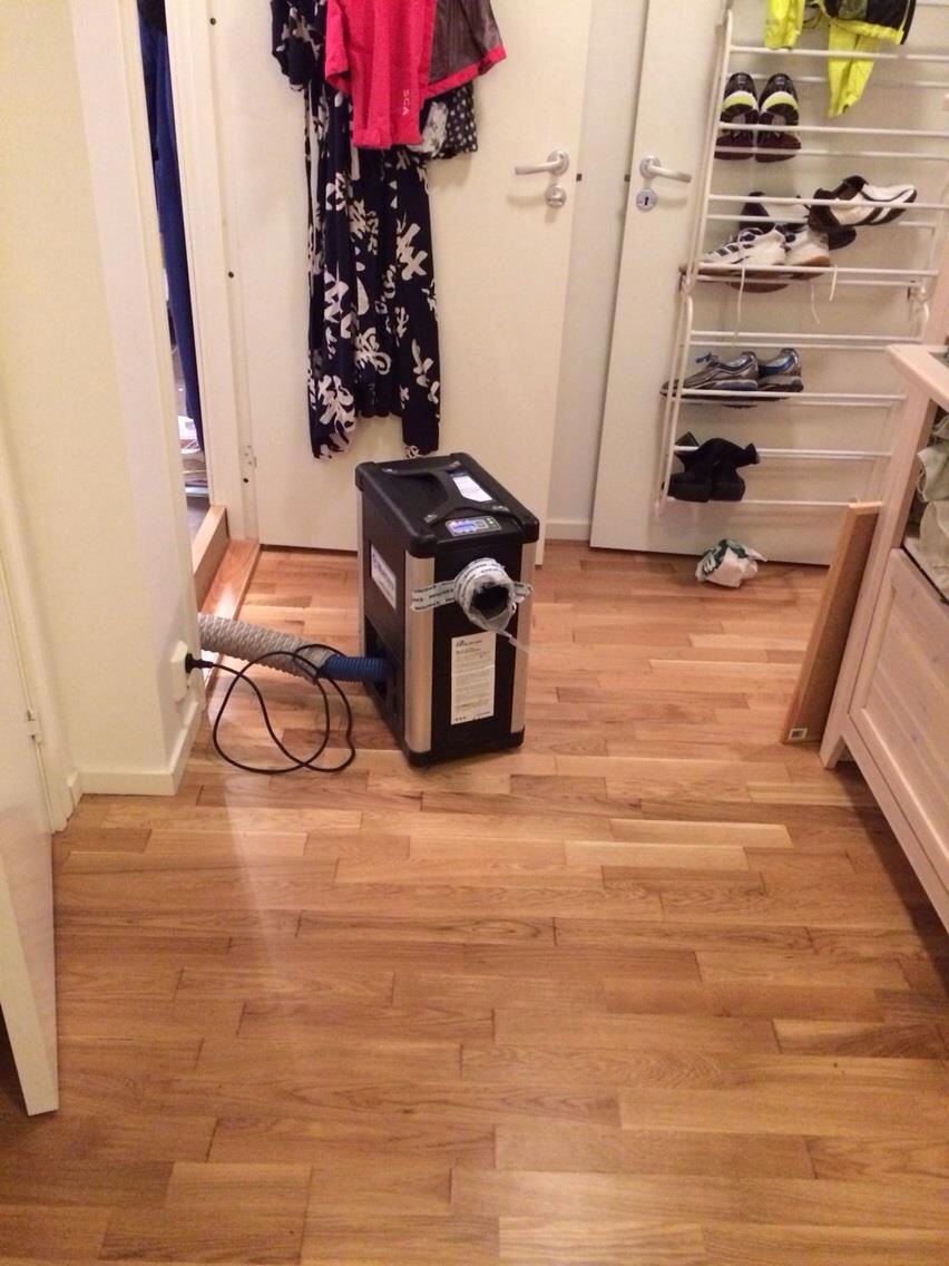 Ena sekunden hade vi ett nytt fint golv, typ ett Ă„r gammalt, nu vattenskadat med avfuktare som jobbar jĂ€rnet…