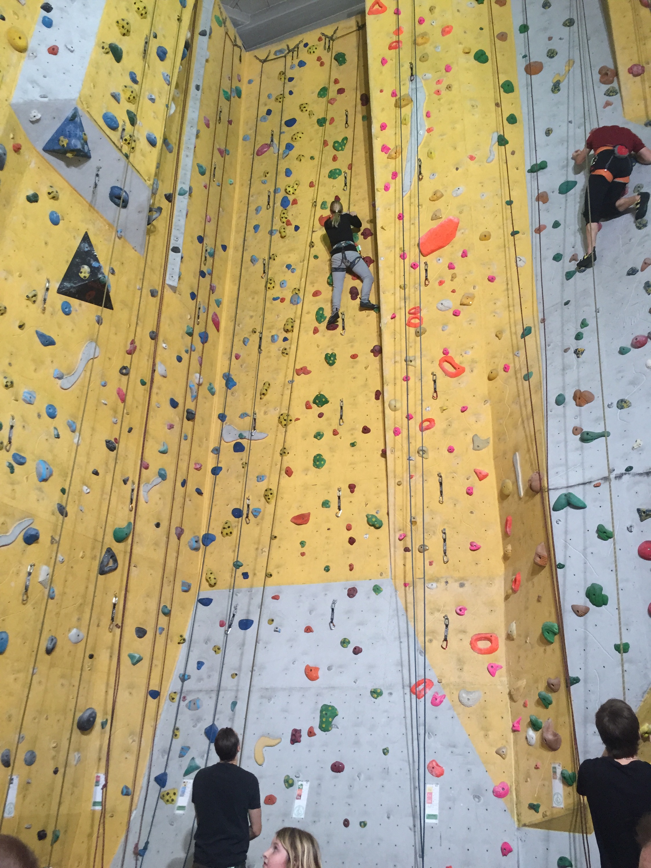 Lina sov över hos en kompis igår natt och ville hellre vara kvar där och leka men Tove, Magnus och jag åkte till Karbin och klättrade idag. Vi har inte varit och klättrat på jättelänge och jag kände mig verkligen ringrostig! Jag vågade först knappt gå förbi receptionen för jag var så rädd att jag hade satt selen bak-och-fram. Hur pinsamt hade inte det varit! Men efter lite minnesuppfriskning med hjälp av Magnus gick det riktigt bra och vi kom snabbt in i det igen. Jag som tidigare har kämpat med min höjdskräck, chockade både mig själv och familjen med att klättra högst upp på 12-metersväggen! Det är alltså den högsta väggen på Karbin. Alltså hur cool är inte jag, jag är så stolt över mig själv idag