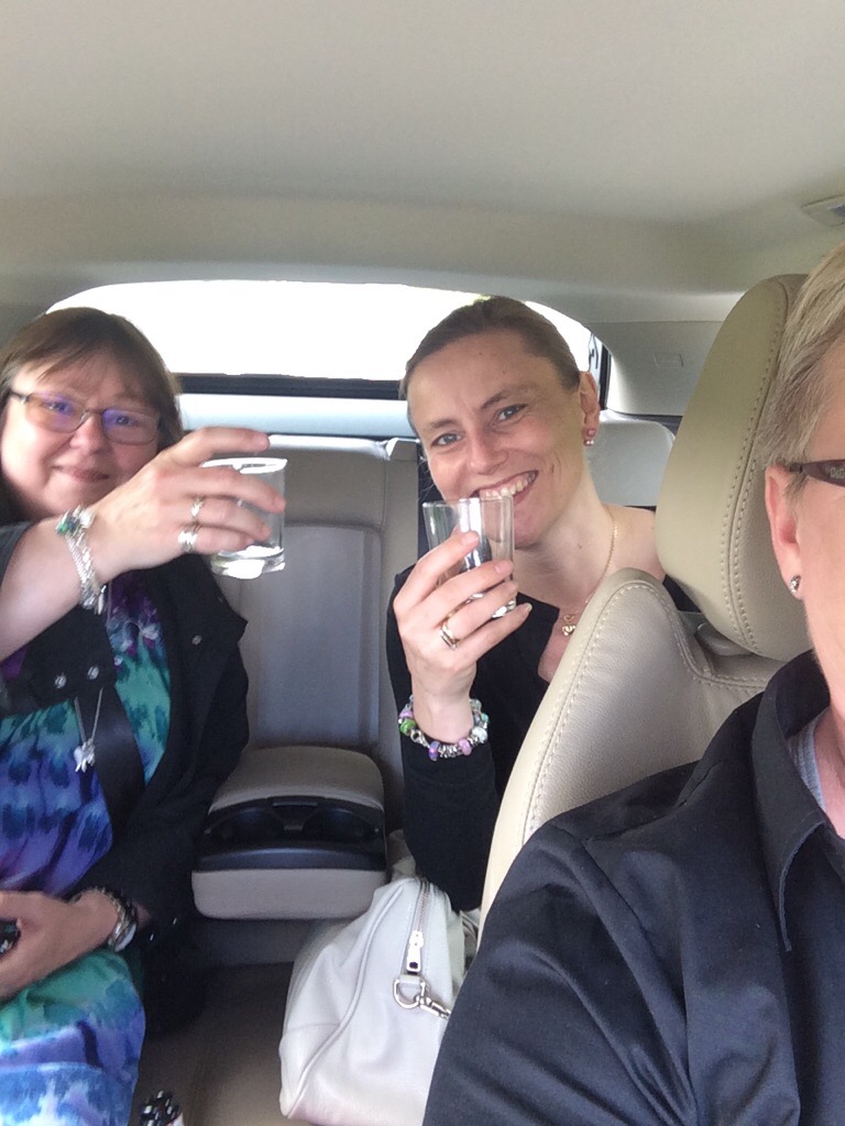 I fredags var det dags att fira Nina som fyllde jämt den 19 maj. En bra anledning till att köra vidare på vår relativt nystartade tradition att samla alla syskon och göra något mysigt tillsammans. Den här gången samlades vi på Söderköpingsbrunn, ett mysigt ställe i Söderköping. Carina och jag hämtade upp Nina utanför jobbet på eftermiddagen och så drog vi iväg. Carina hade fixat lite bubbel till Nina och mig i baksätet, väldigt lyxigt!