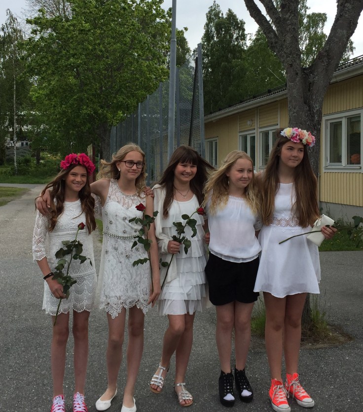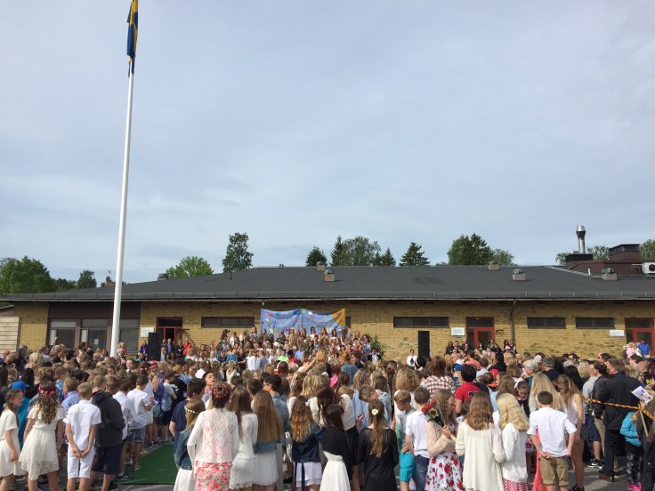 Idag har det varit skolavslutning. Båda tjejerna går i samma skola det här läsåret, men sen är det slut på det. Tove gick nämligen sitt sista år på Solfagraskolan och slutade 6:an idag. När rektorn höll sitt tal berättade han att de kallar 6:orna för ”Buhuerna” denna dag eftersom de är så ledsna för att de går sin sista dag på skolan. Lite så var det nog, det var lite sorgligt att skiljas idag. Nästa år ska de flesta visserligen gå i samma skola men i olika klasser. Två av Toves bästa kompisar ska dessutom byta skola. Lite trist men, men, dom kan ju träffas på fritiden ändå så klart. Lina har gått sitt första år på Solfagraskolan och slutade 4:an idag. Hon var så glad för att det äntligen har blivit dax för sommarlov! Inga ledsna miner där inte😀