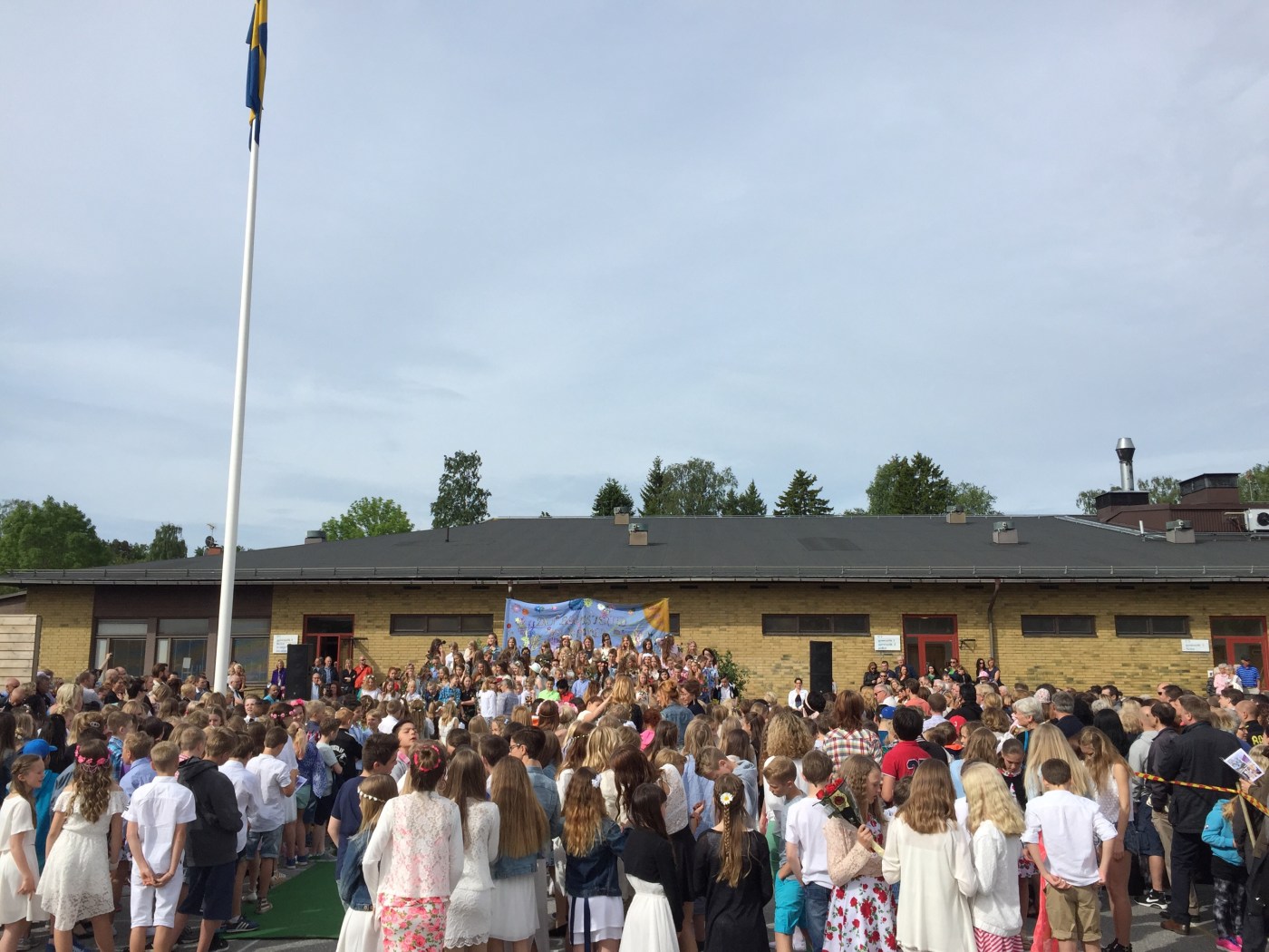 Flaggan i topp och 6:orna på scenen för att sjunga sommarsånger.
