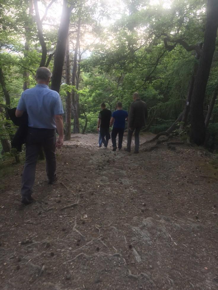 När första mötesdagen var klar begav vi oss av till den lilla orten som faktiskt heter Spa (visste inte att det fanns en stad som hette så). Det ligger ca 1,5 h från Bryssel och ganska nära en av våra fabriker i Stembert som vi skulle besöka dagen efter. Alla checkade in på hotellet, bar upp väskorna, fräshade till sig lite för att sen mötas upp och gå ut på middag. Enligt Alex var det en kort promenad till restaurangen, vad han glömde nämna var kanske att dom här skorna…