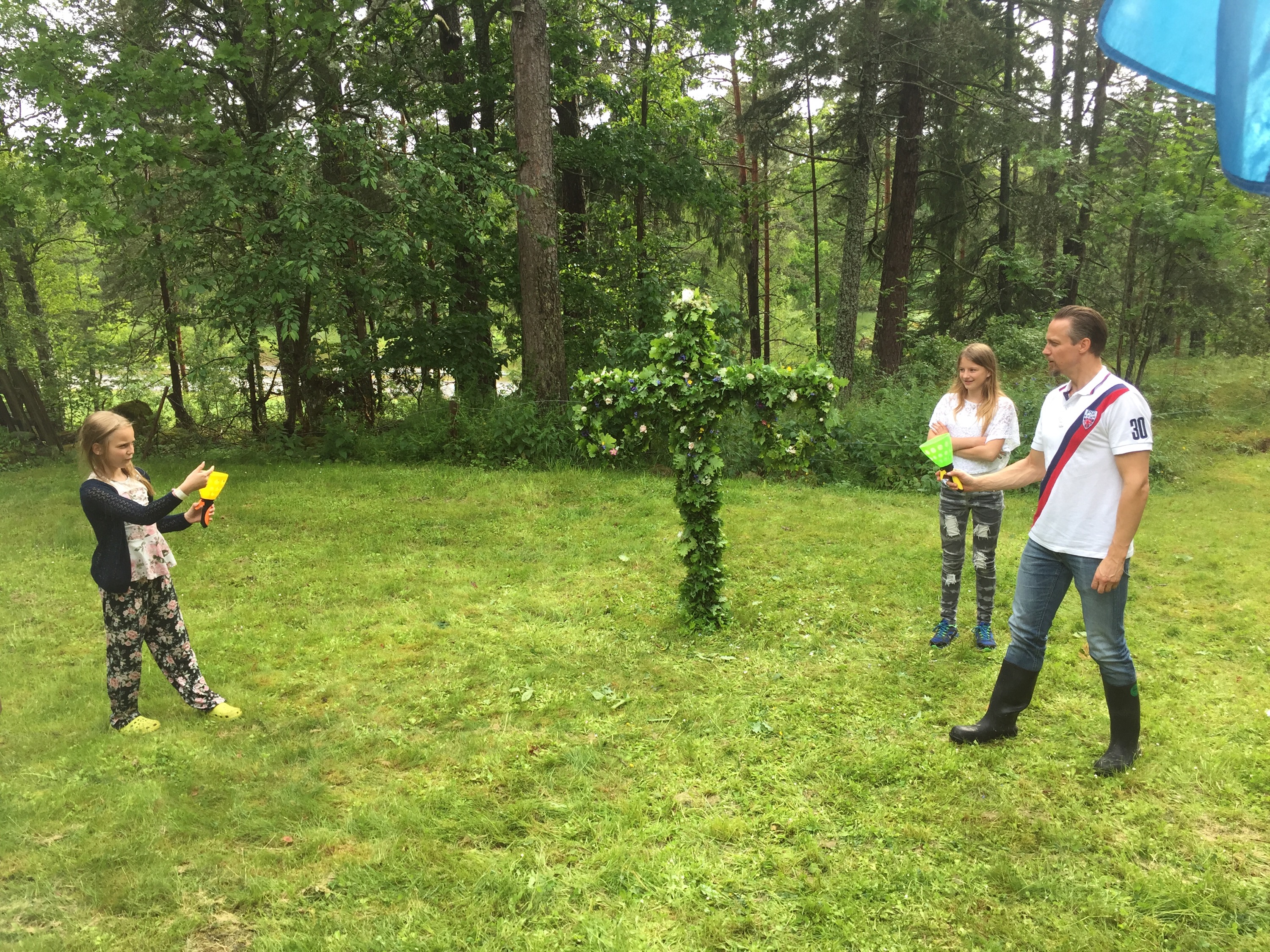 … firade vi midsommar med Magnus syster med familj och svärfar. 10 personer och ösregn ute. Men vi har haft supermysigt måste jag säga, och myggfritt!