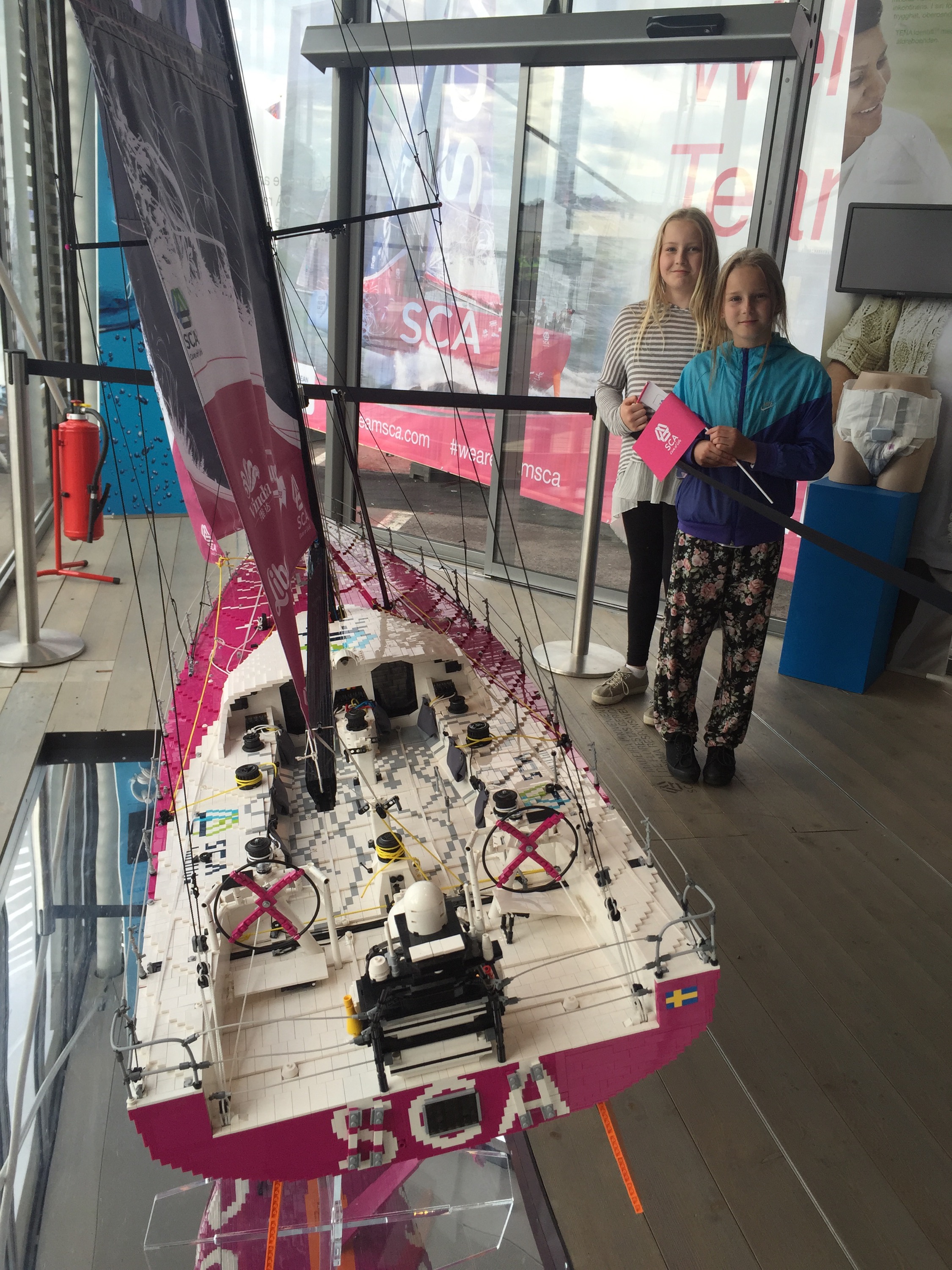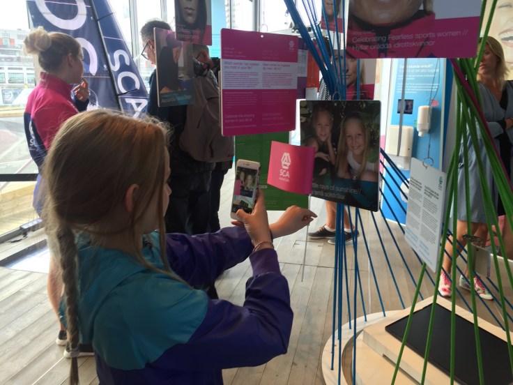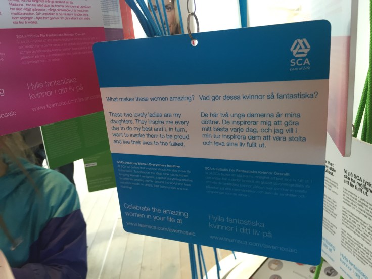 Här hittade vi en bild på tjejerna! Jag har skickat in den till Team SCA – Amazing Woman och så blev den utvald att visas upp i SCAs monter. Tjejerna (och jag) tyckte det var jättekul att se den live i montern, och vi var tvungna att ta fotobevis förstås😀