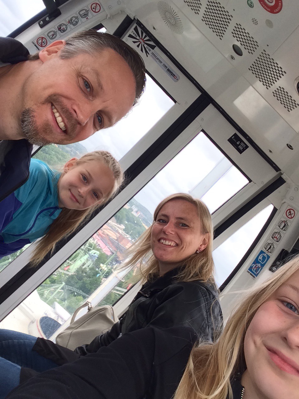 Familjen tyckte nog lite synd om mig som inte vågade åka Helix och bjöd till och gick med på att åka Lisebergshjulet med mig. Det visade sig dock att den var den läskigaste attraktionen på hela dagen. Efter den kunde jag lika gärna åka allt! Fy vad högt, vingligt och knakigt det var där uppe! Se så, le för kameran, vi har ju roligt nu!