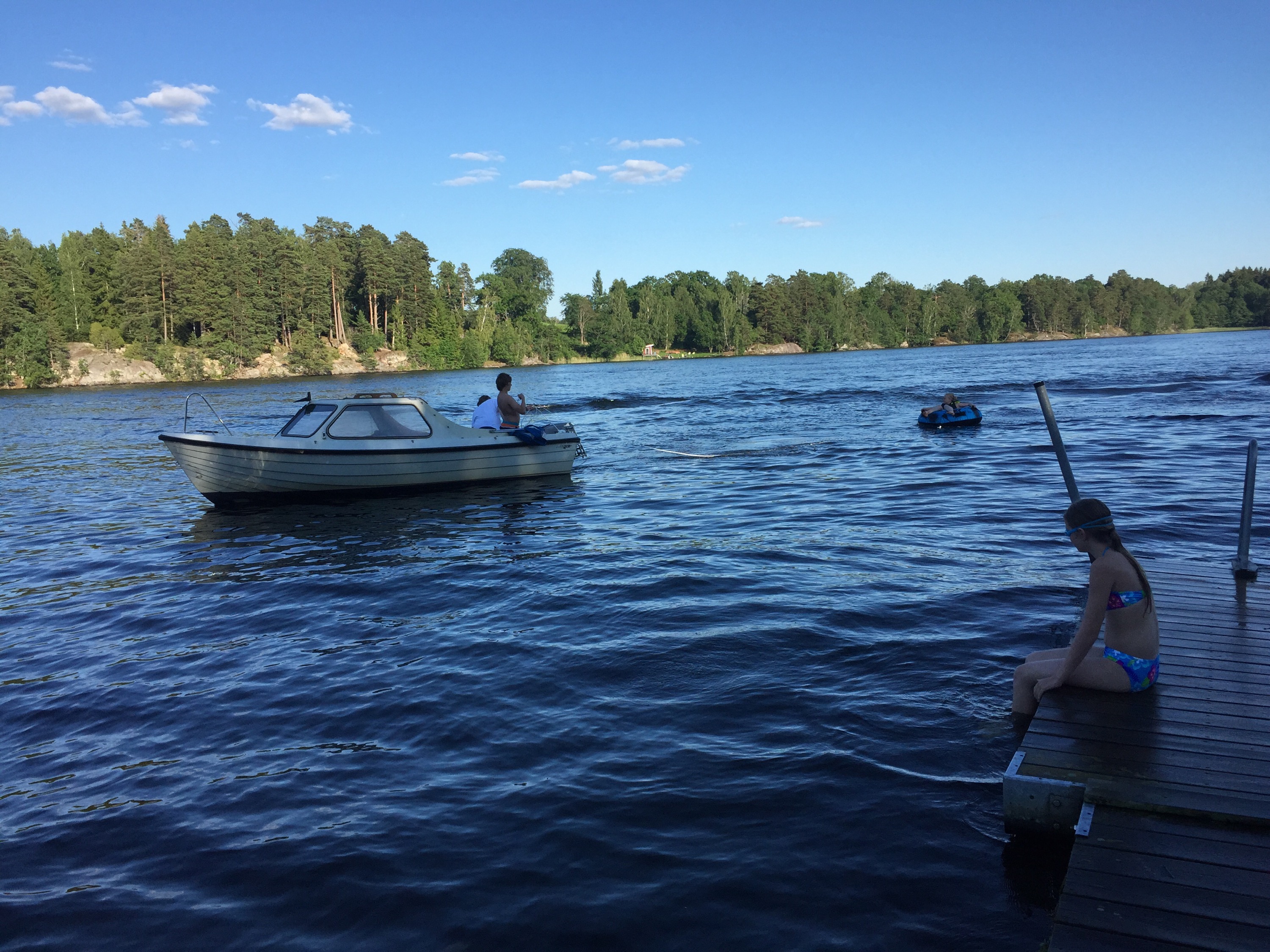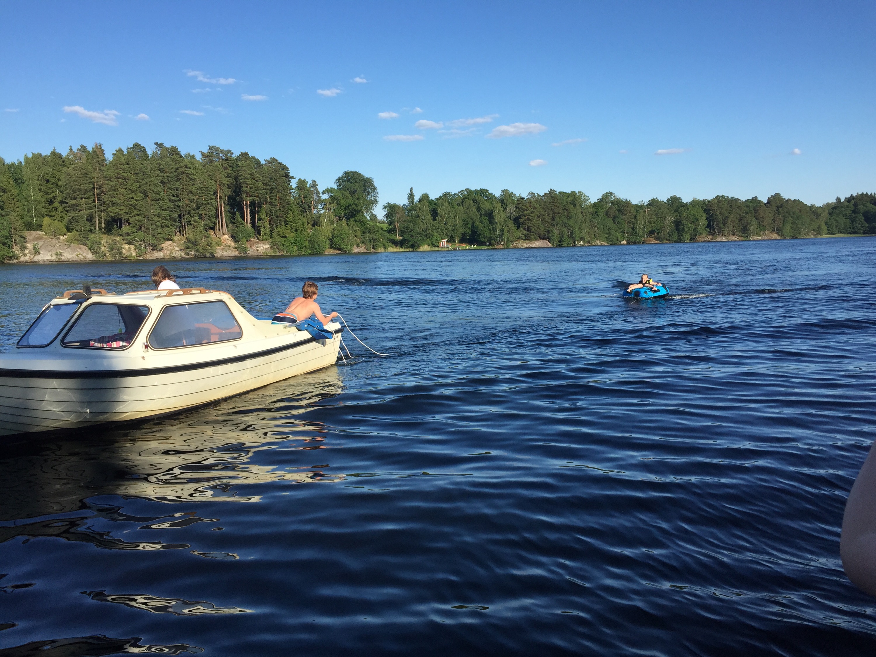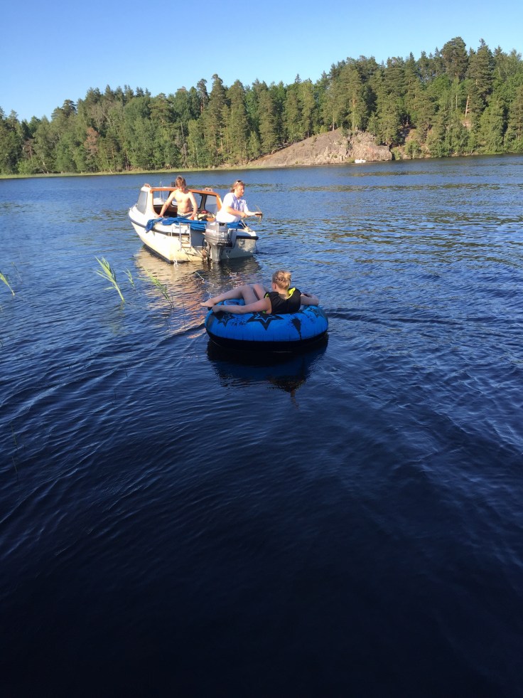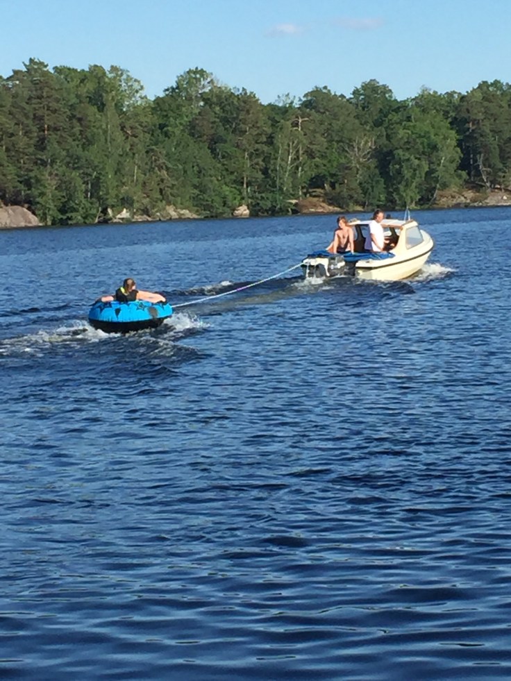 En av dagens höjdpunkter var att åka badring. Här är det Lina som far iväg.