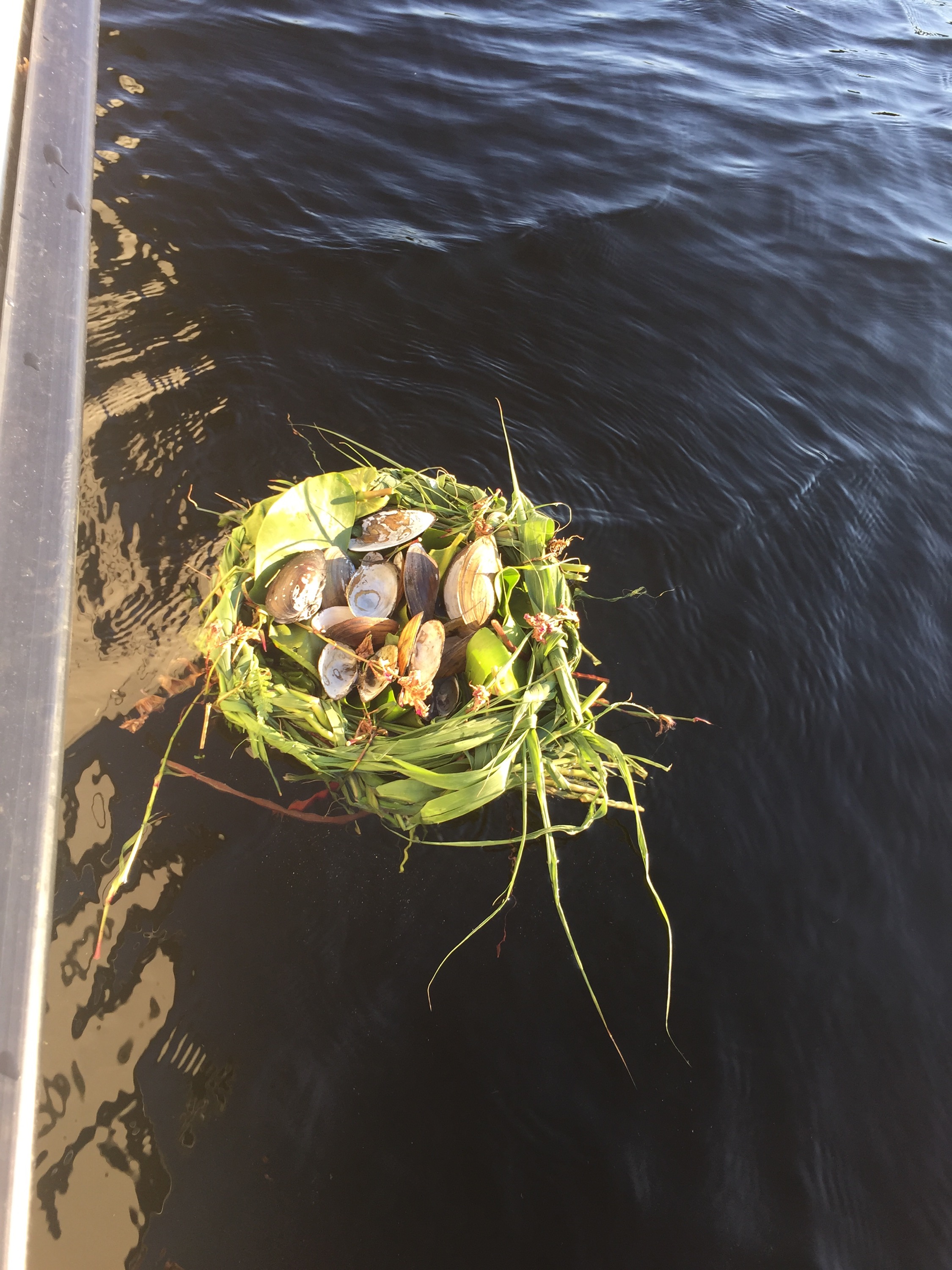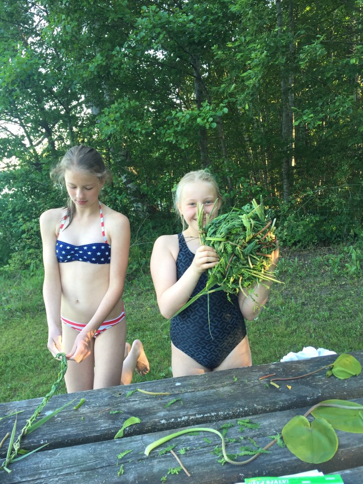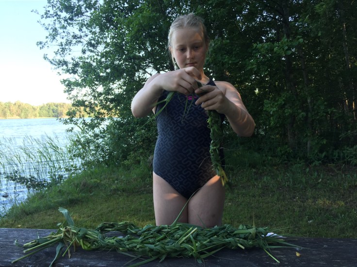 Pyssel på stranden. Detta blev en slags flätad korg som sjösattes innan vi åkte iväg.