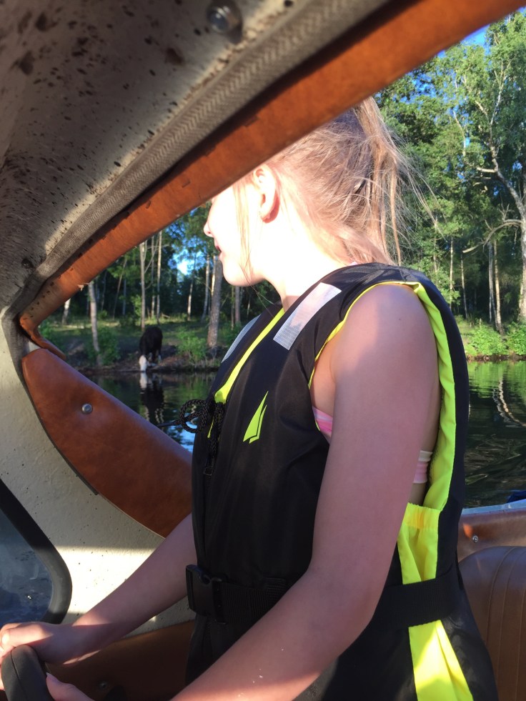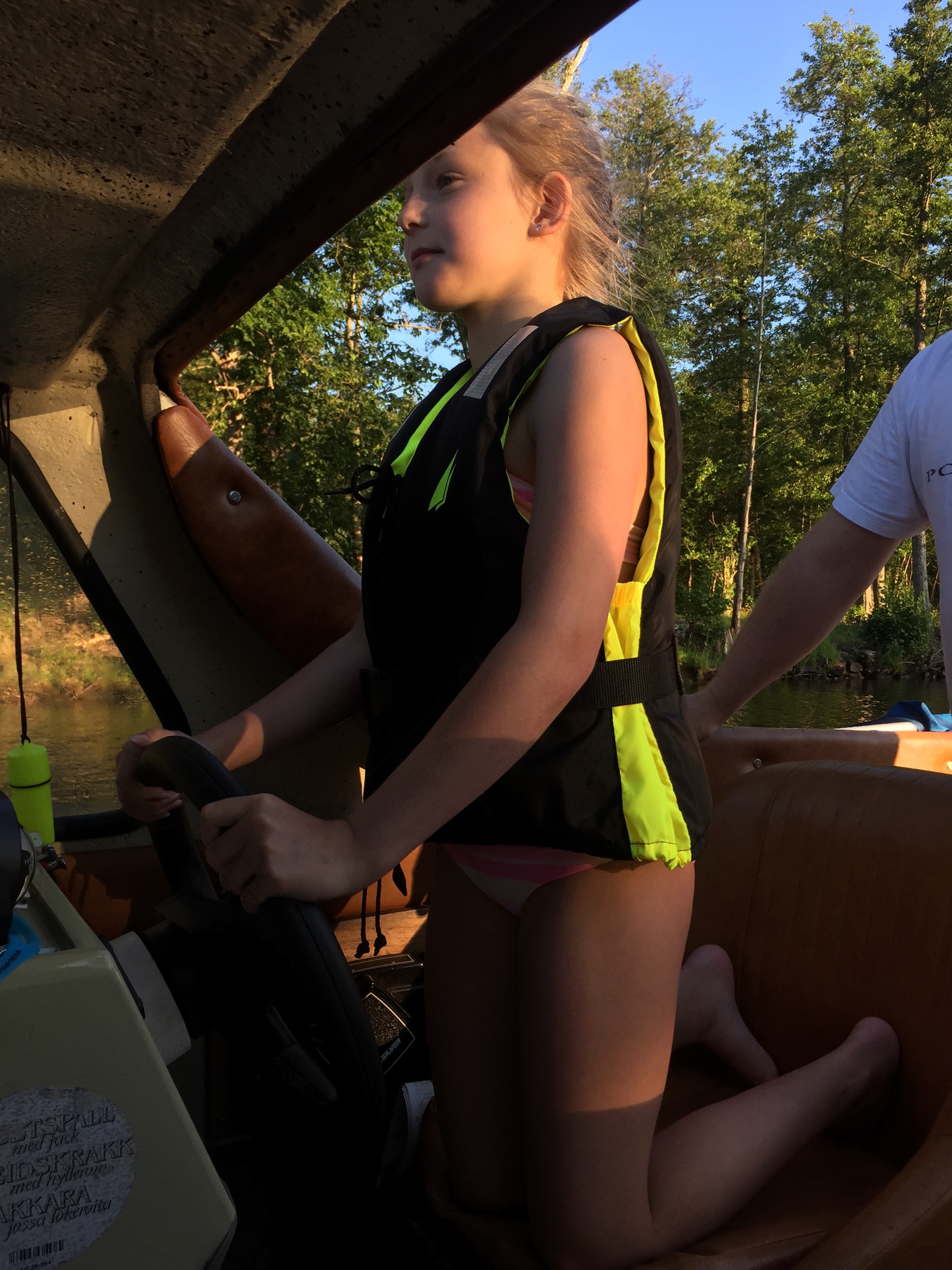 Lina fick prova att köra båten.