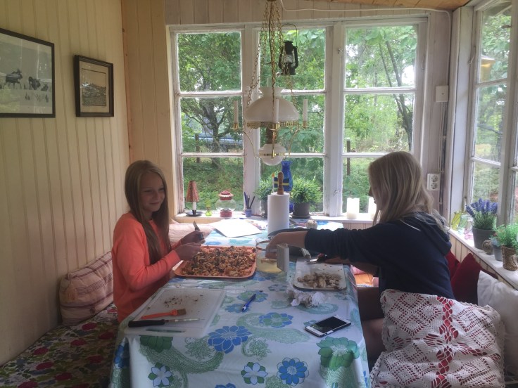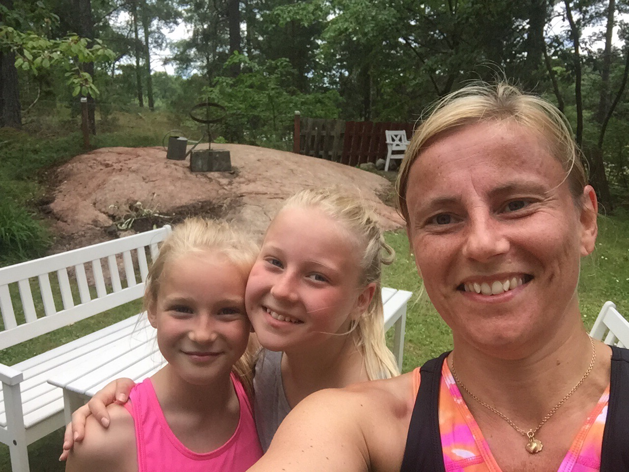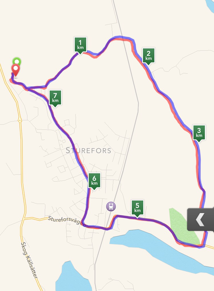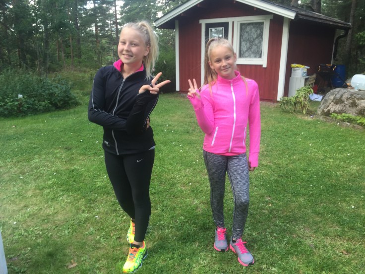 Alla tre sprang tillsammans till Vreta by (2,5 km) där tjejerna vände och jag sprang vidare på långa rundan. Utmaningen blev att se vem som kom först tillbaka…