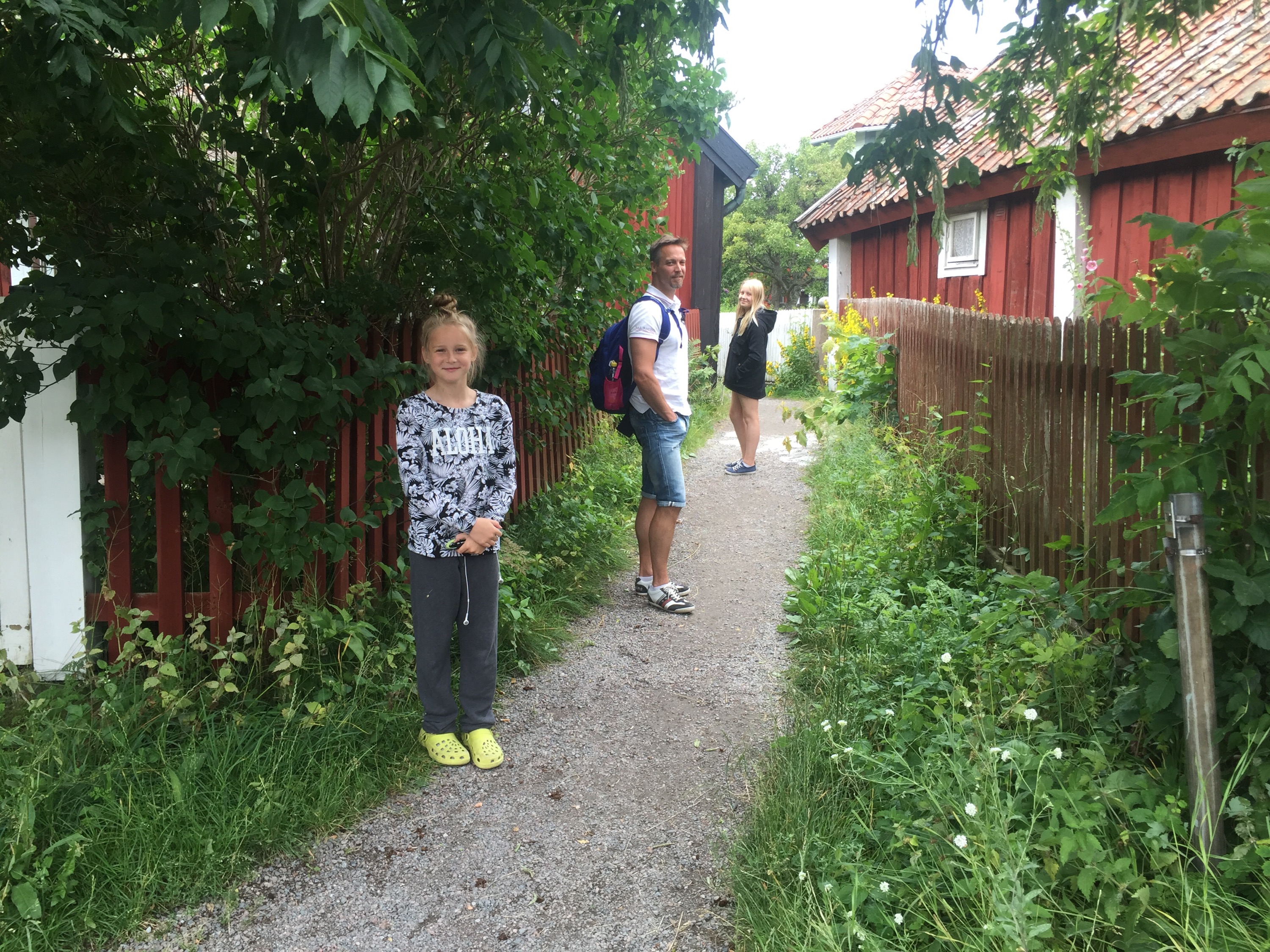 Sen knallade vi runt en stund på ön. Det blev inte så långt eftersom vi hade Linas väska att släpa på längs med grusgångarna😓 men mycket gulliga hus som låg tätt, tätt. Man får nog inte vara så känslig för fönstergluttare om man ska ha sommarstuga där typ…