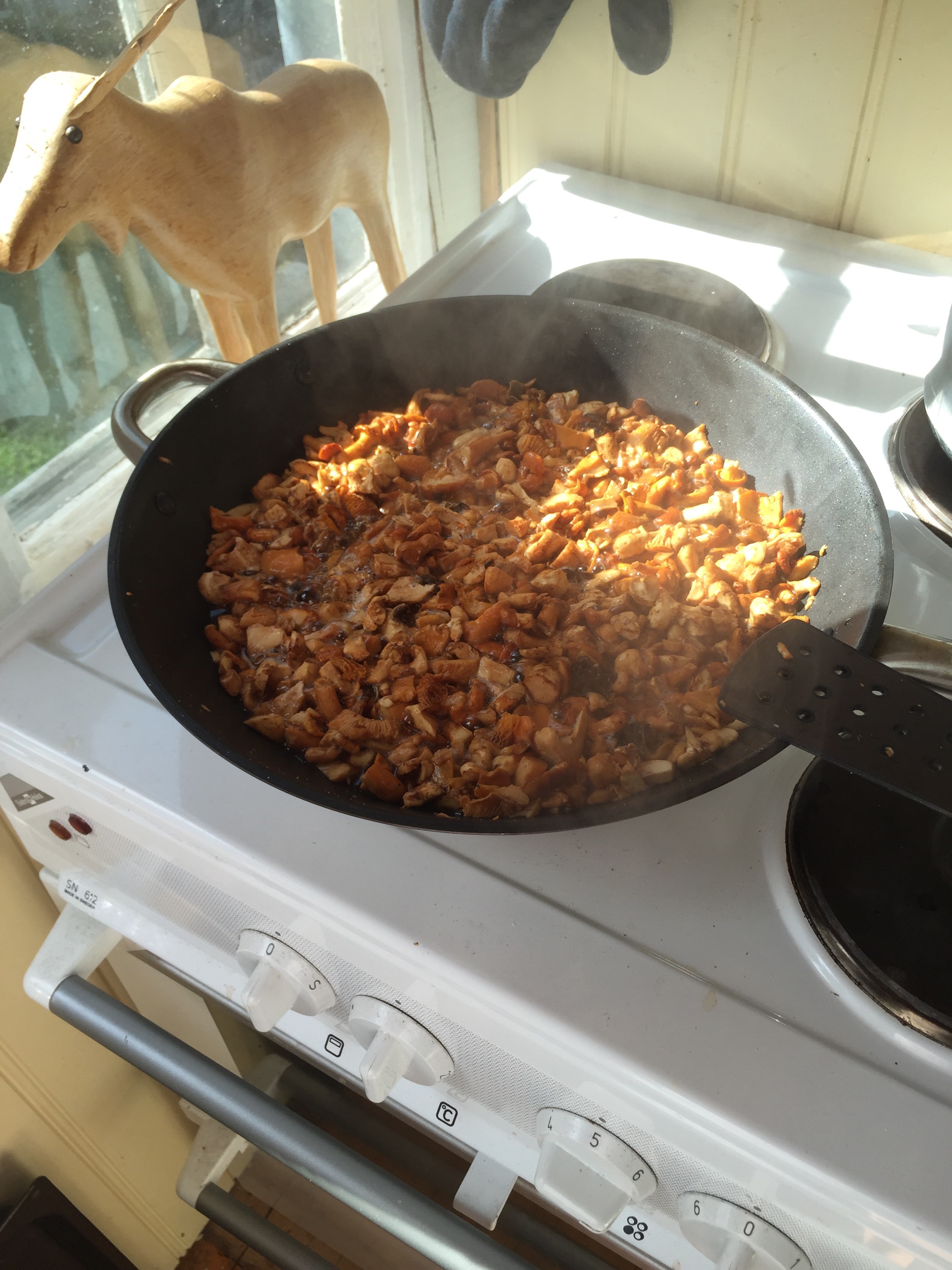 Lite bilder från söndag får slinka med också. Här är lyxlunchen snart klar. Finns inget godare än Kantarellmacka!