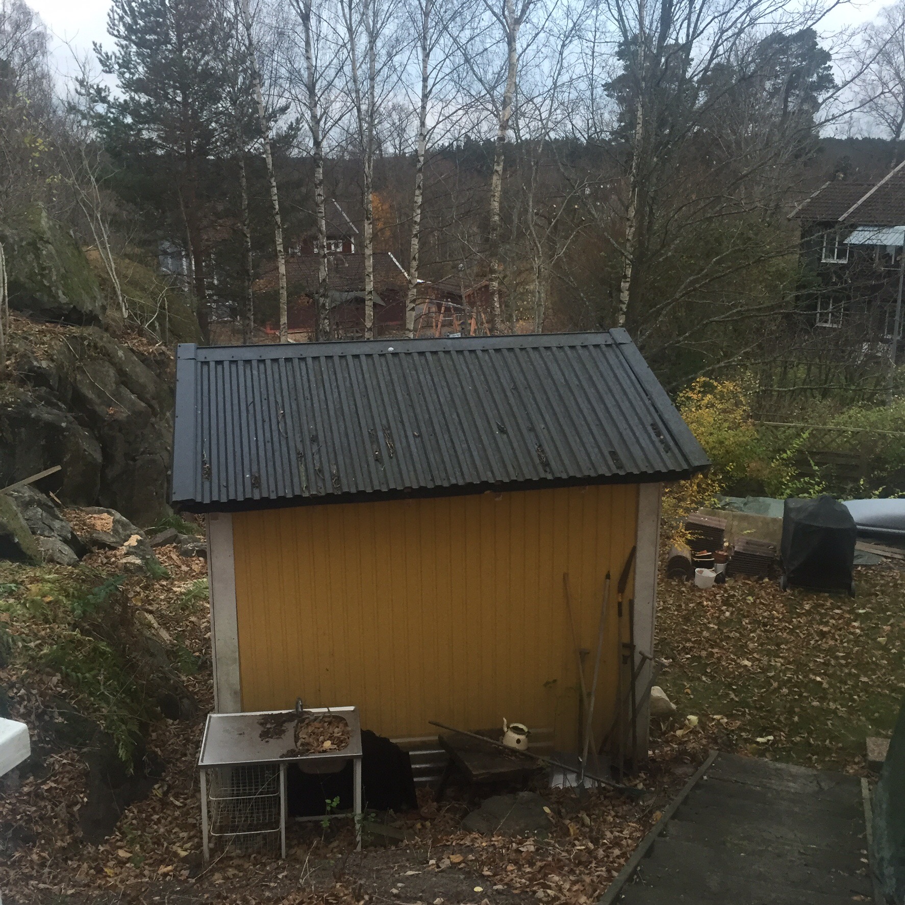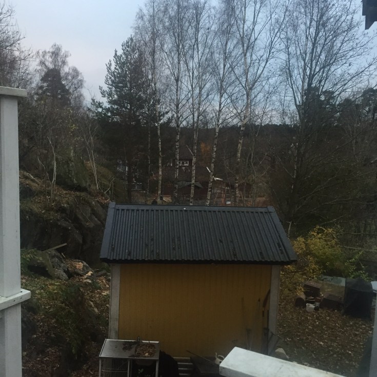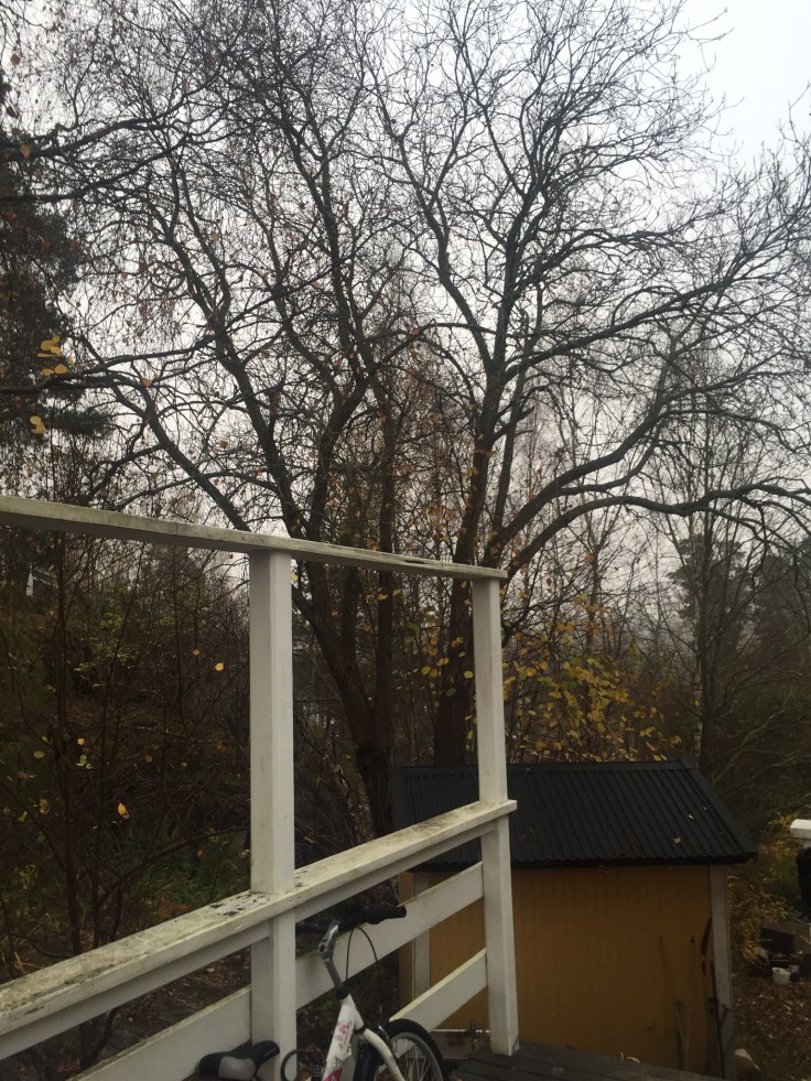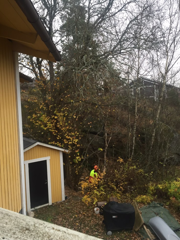 Idag ska trädet vid boden fällas. Det står lite nära huset. Jag tycker inte om att fälla stora fina träd så detta är lite jobbigt för mig😕