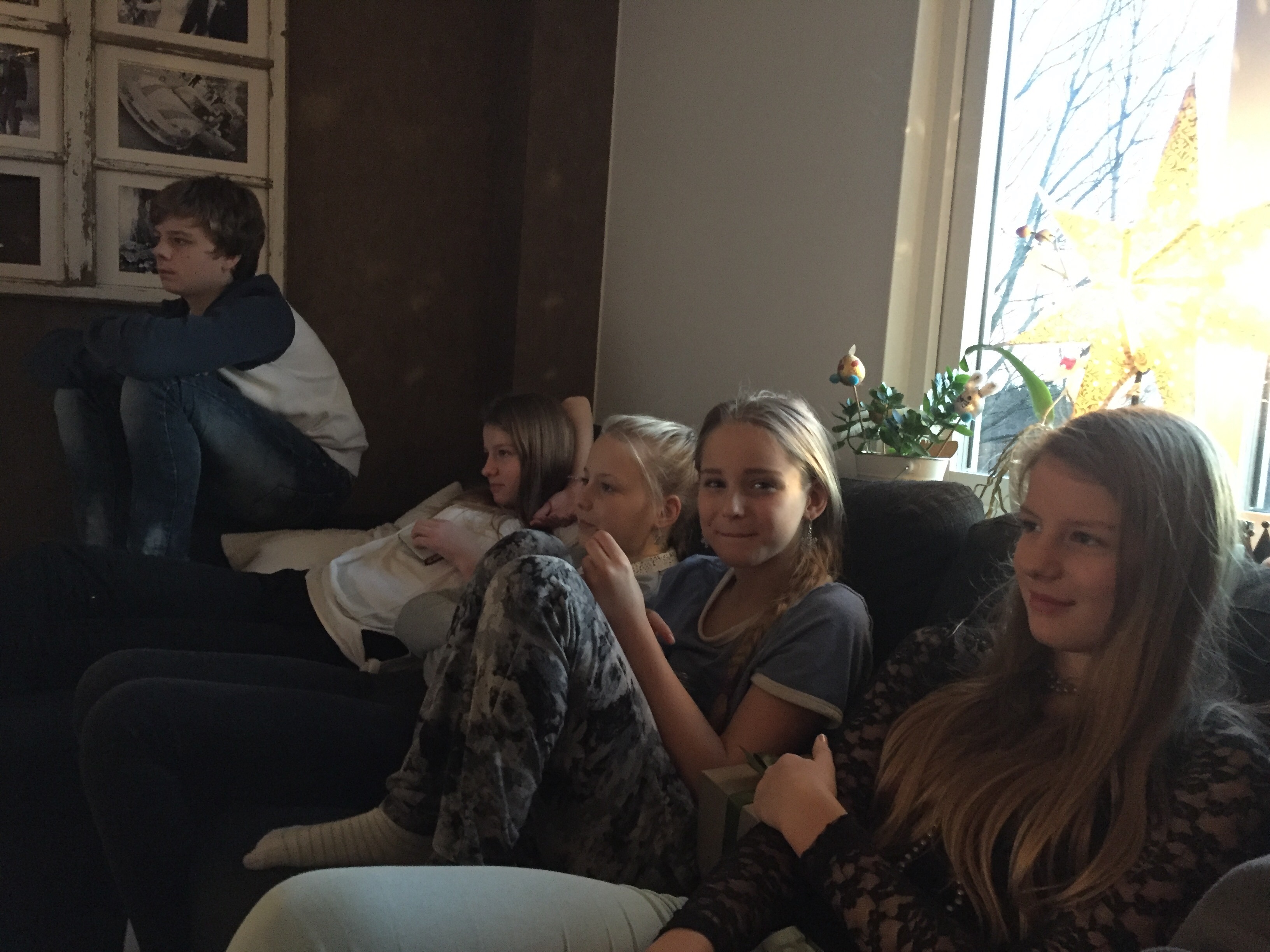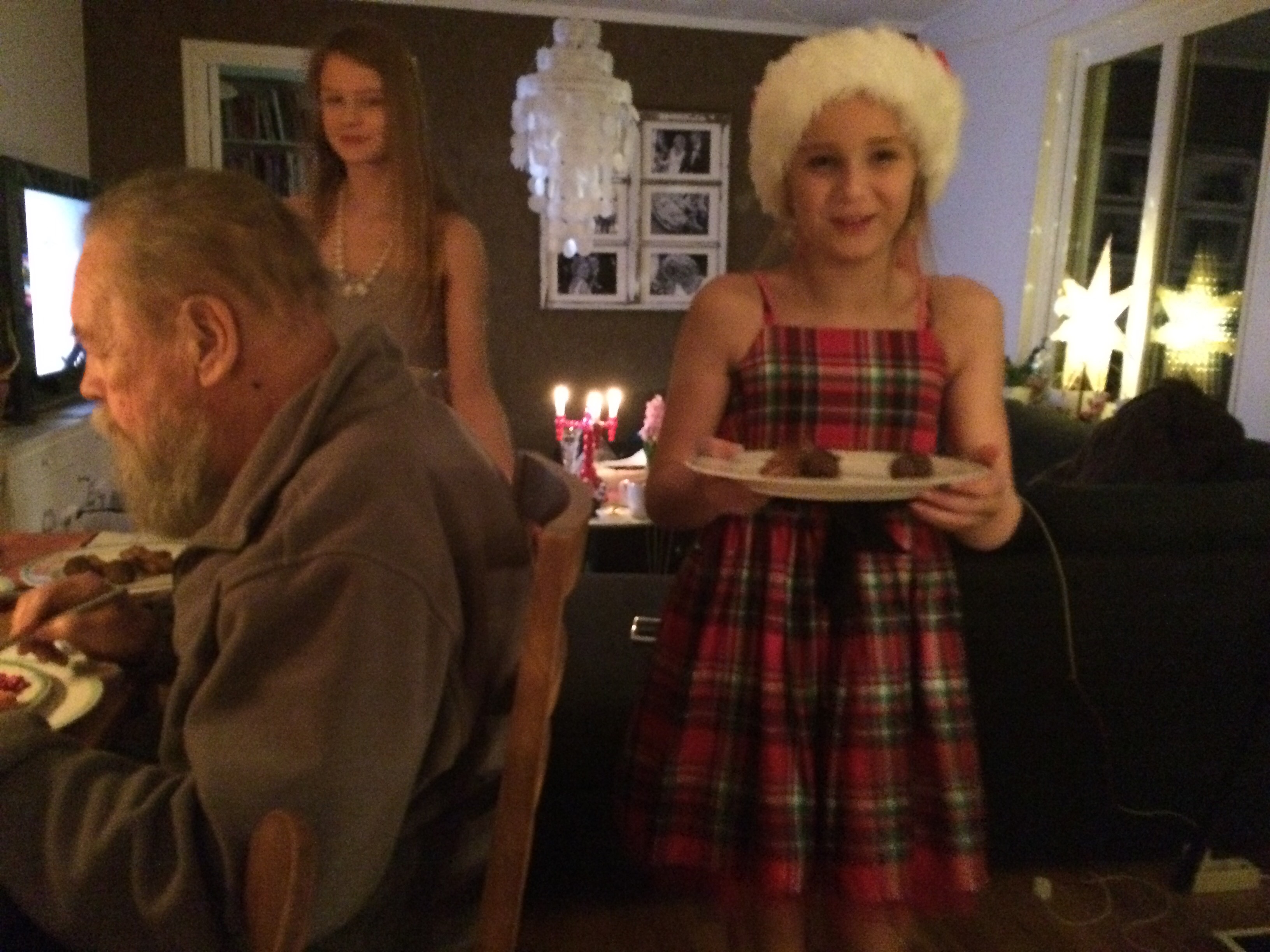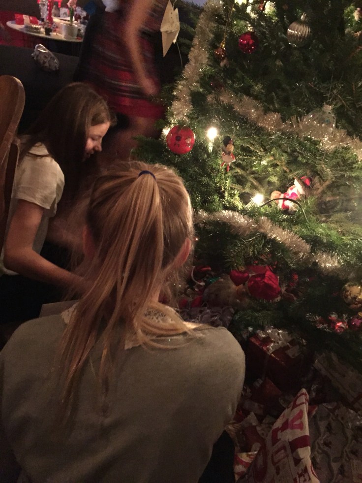 Efter frukost på julafton packade vi in alla i bilen och åkte över till Magnus kusin Elin och hennes man Ralph för att fira mini ”Olssons”-jul. Innan barnen kom firade vi alltid Magnus julafton hos Olssons. Nu är vi så många så nu träffas vi och fikar en stund innan Kalle Anka. Helt galet att dom får in alla igentligen;