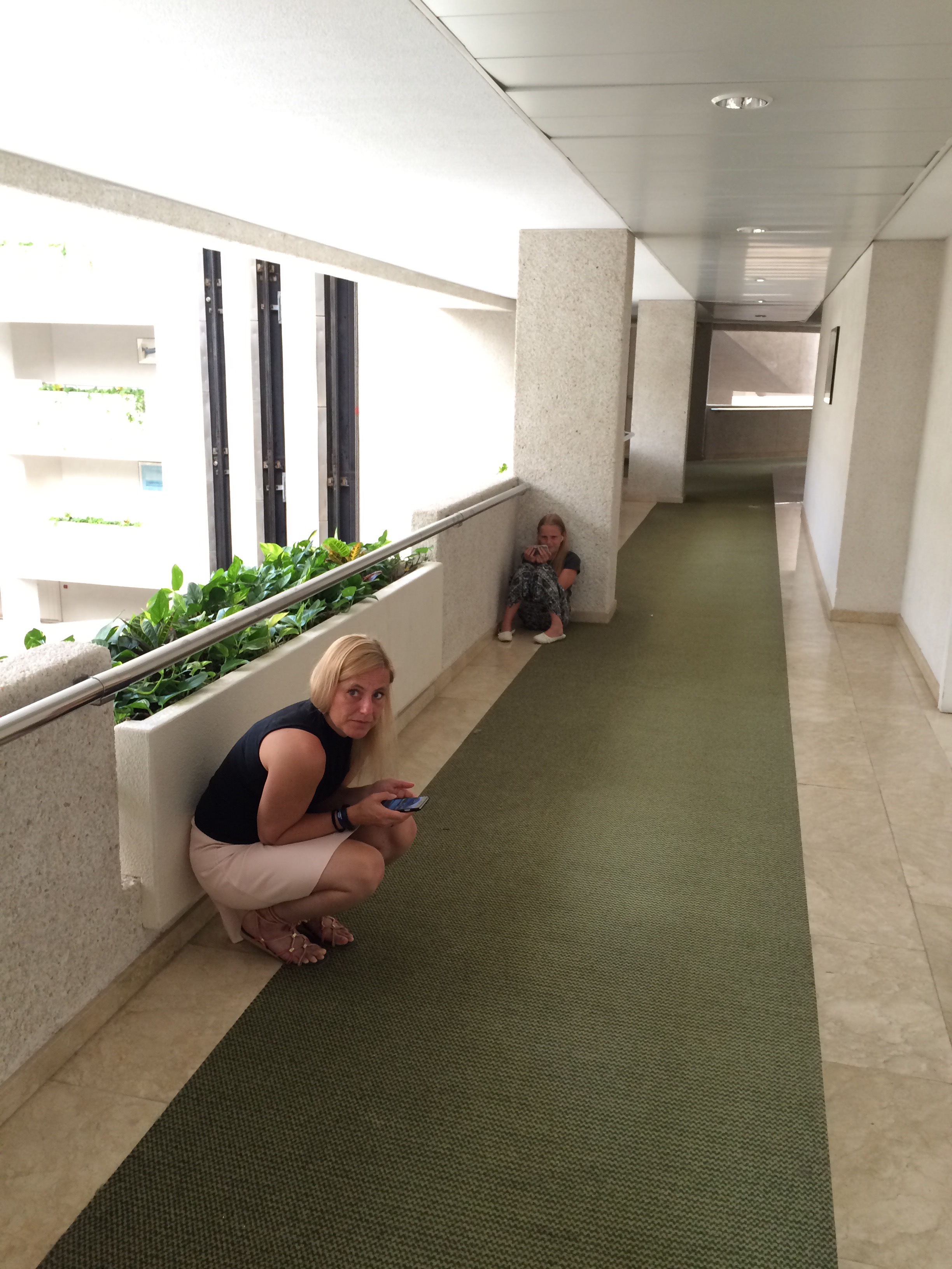 Tillbaka på hotellet och på väg ut på middag. Ja, nu är det inte så att vi sitter här i korridoren för att vi tycker det är roligt. Grejen är att gratis wifi på hela hotellet inte betyder samma sak för Solresor som för oss. Det betydde tydligen, har du tur så fungerar det och störst chans har du om du hänger i korridoren men då får du räkna med att det är väldigt trögt🙄 Inte ok!