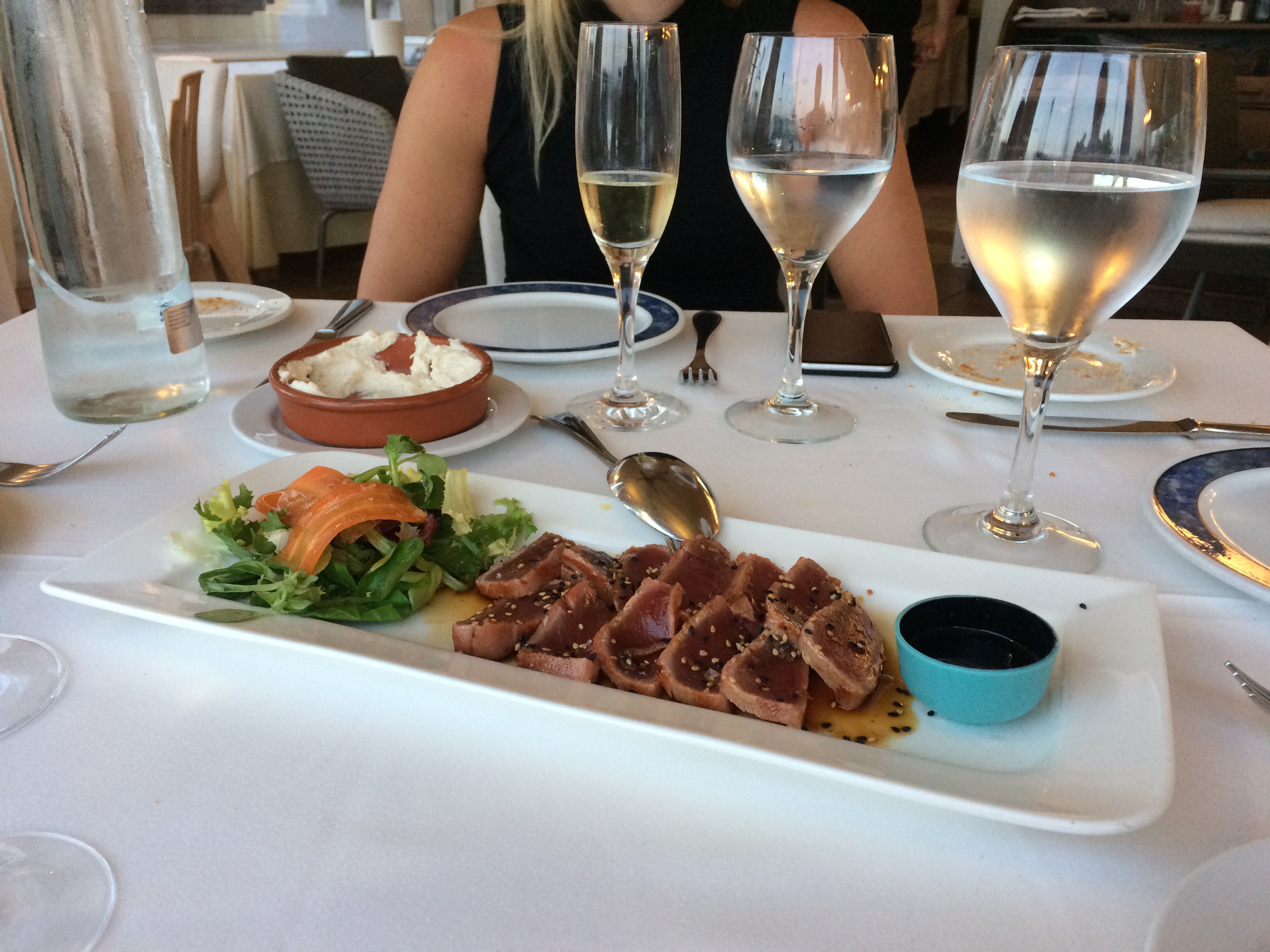 Sen begav vi oss ut på restaurangjakt för att få lite omväxling på all-inclusive maten. Vi hittade en nere i hamnen som hade grym tonfiskförrätt…