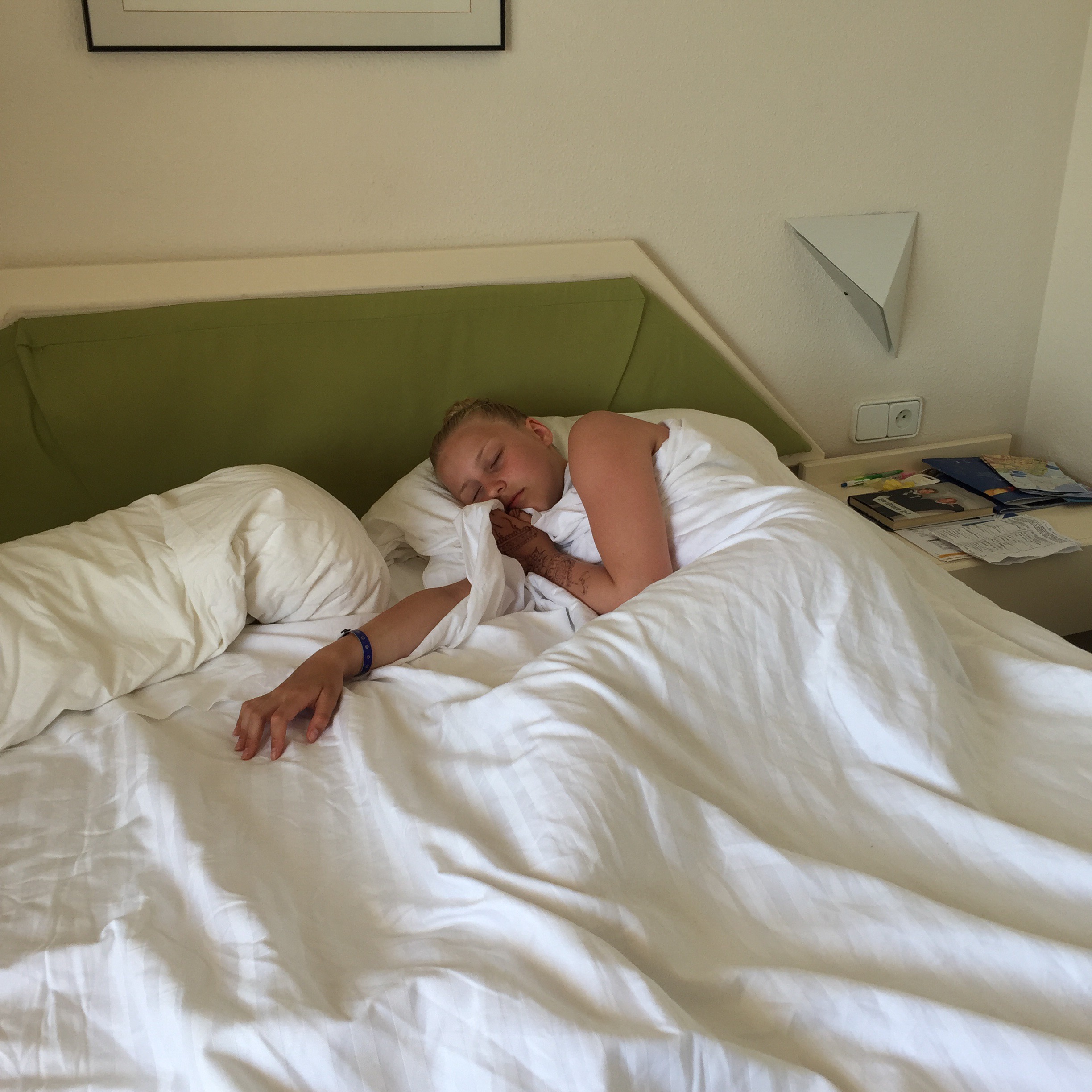 Jag och Tove tog en eftermiddagslur medan Magnus och Lina gick ner till poolen och badade.
