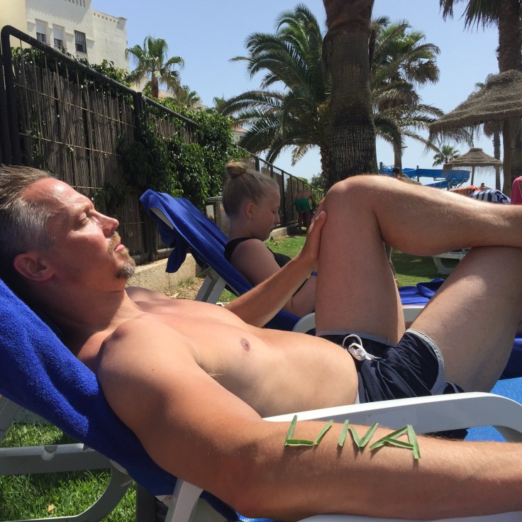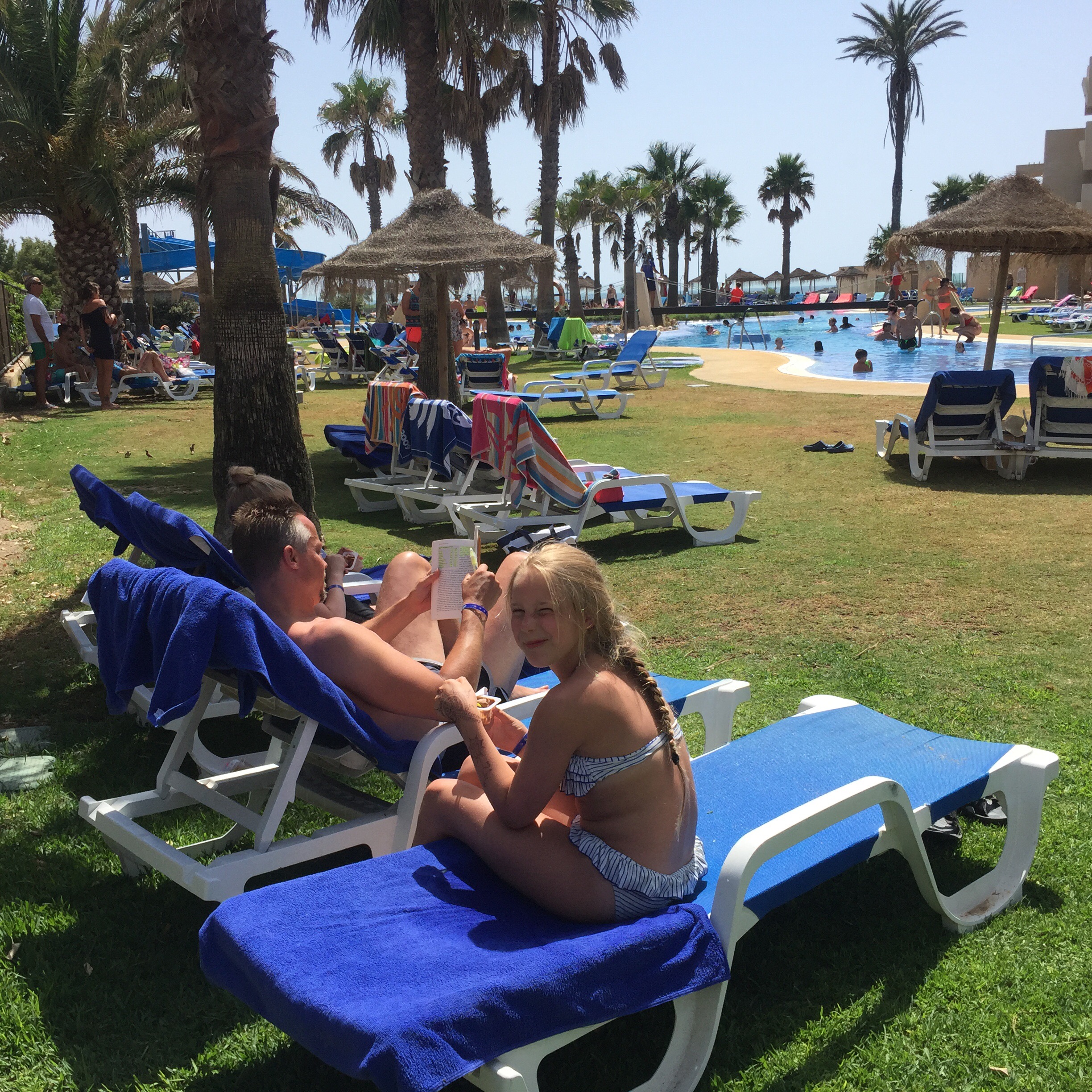 När vi orkade masa oss ner hade dom lyckats fixa solstolar till oss också, trots att vi inte hade varit nere 7.30 och paxat några med handdukar😏