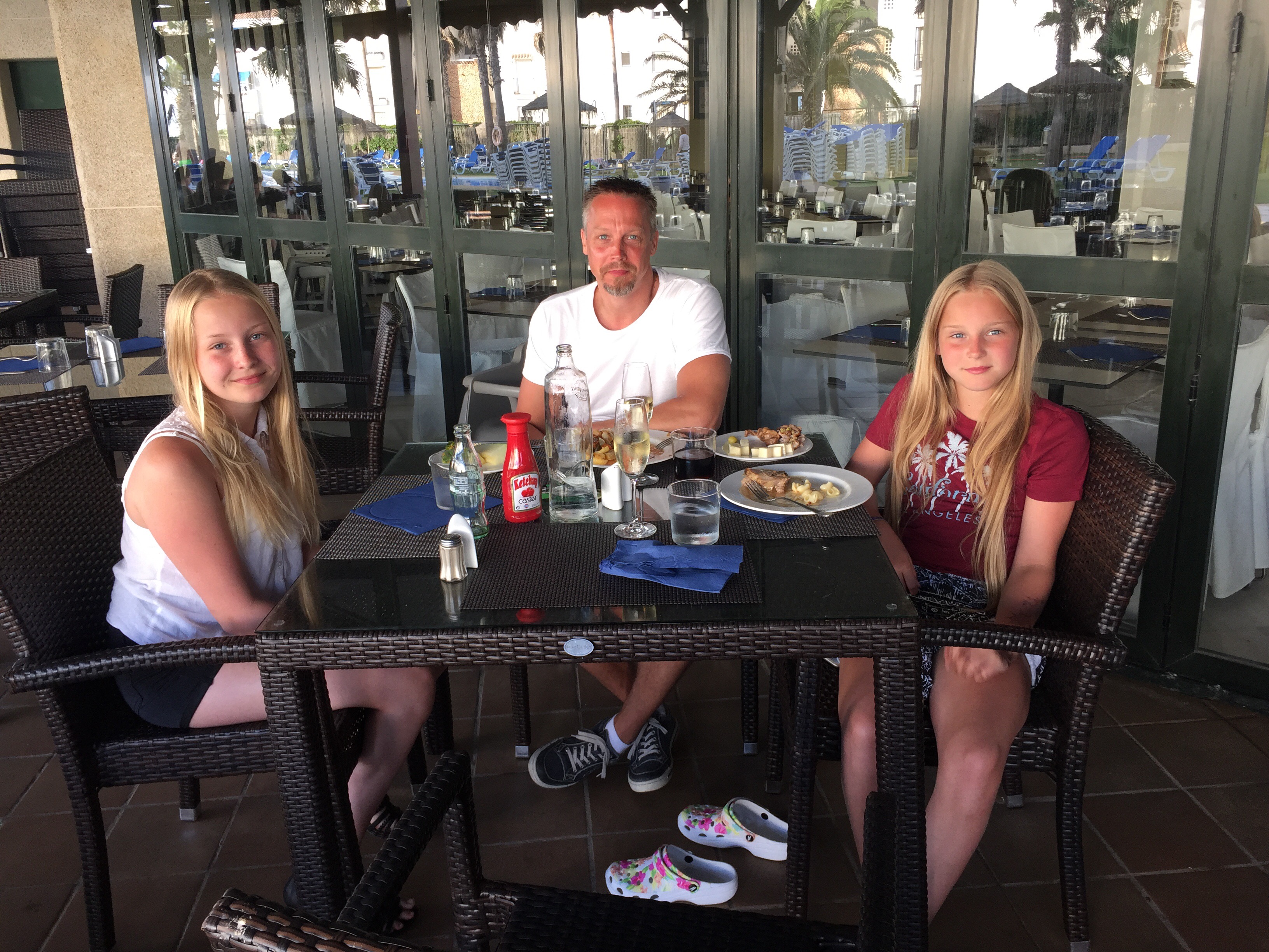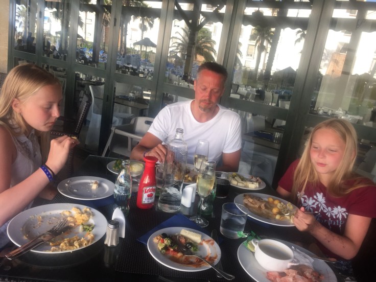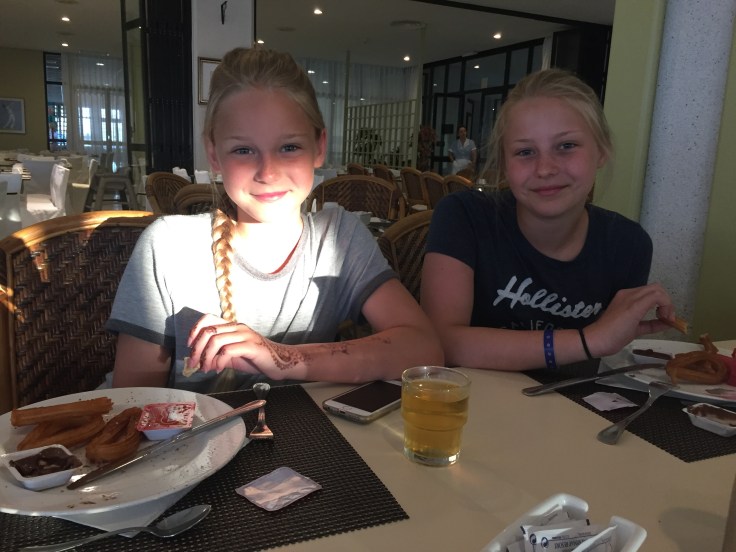 Sista frukosten innan avfärd. Tove och Lina kommer att sakna dom där friterade fritörsmetskorvarna doppade i Nutella😁 bästa frukosten ever…not…men på semester får man vara lite cracy😋👙🏖.
