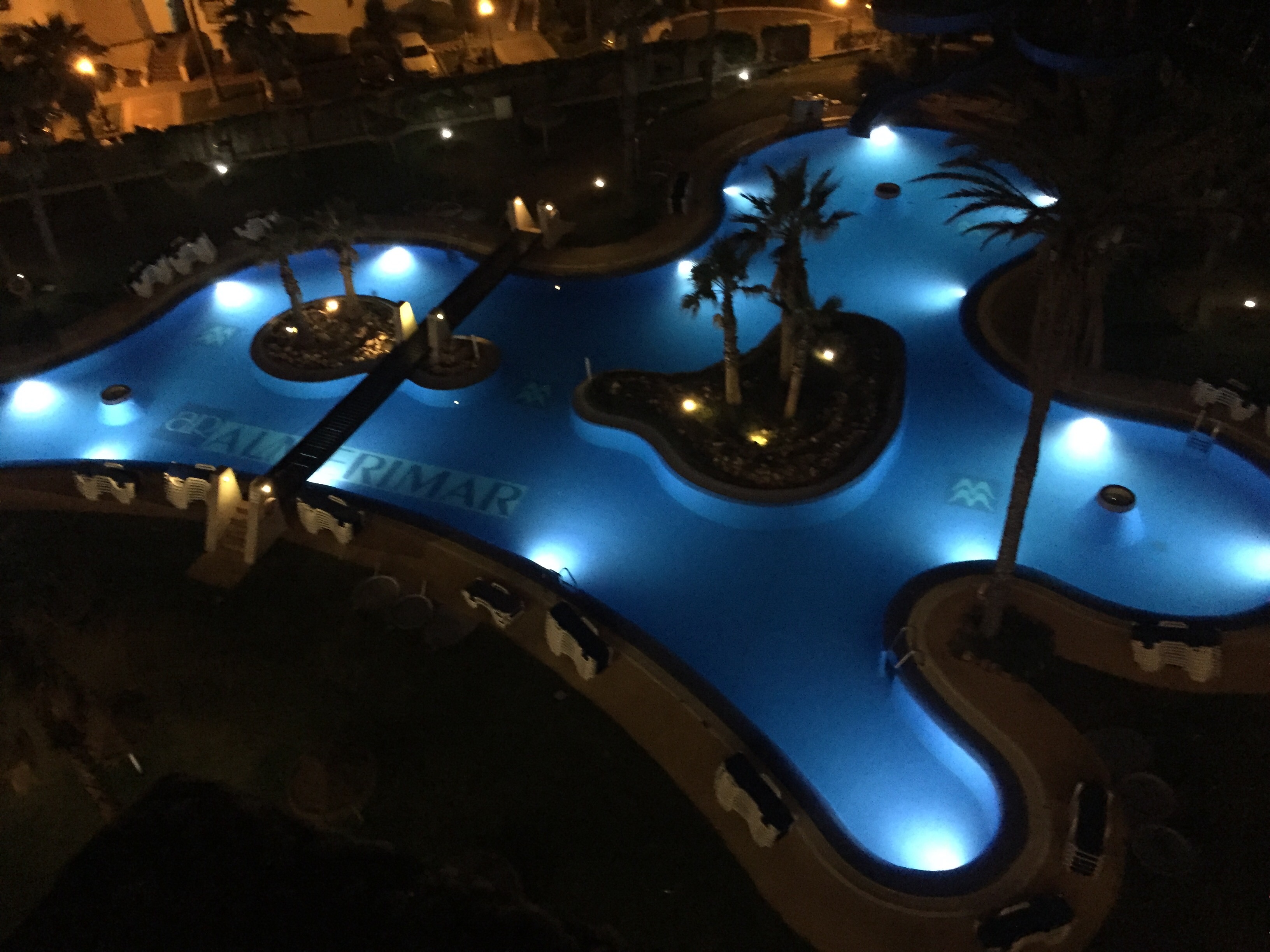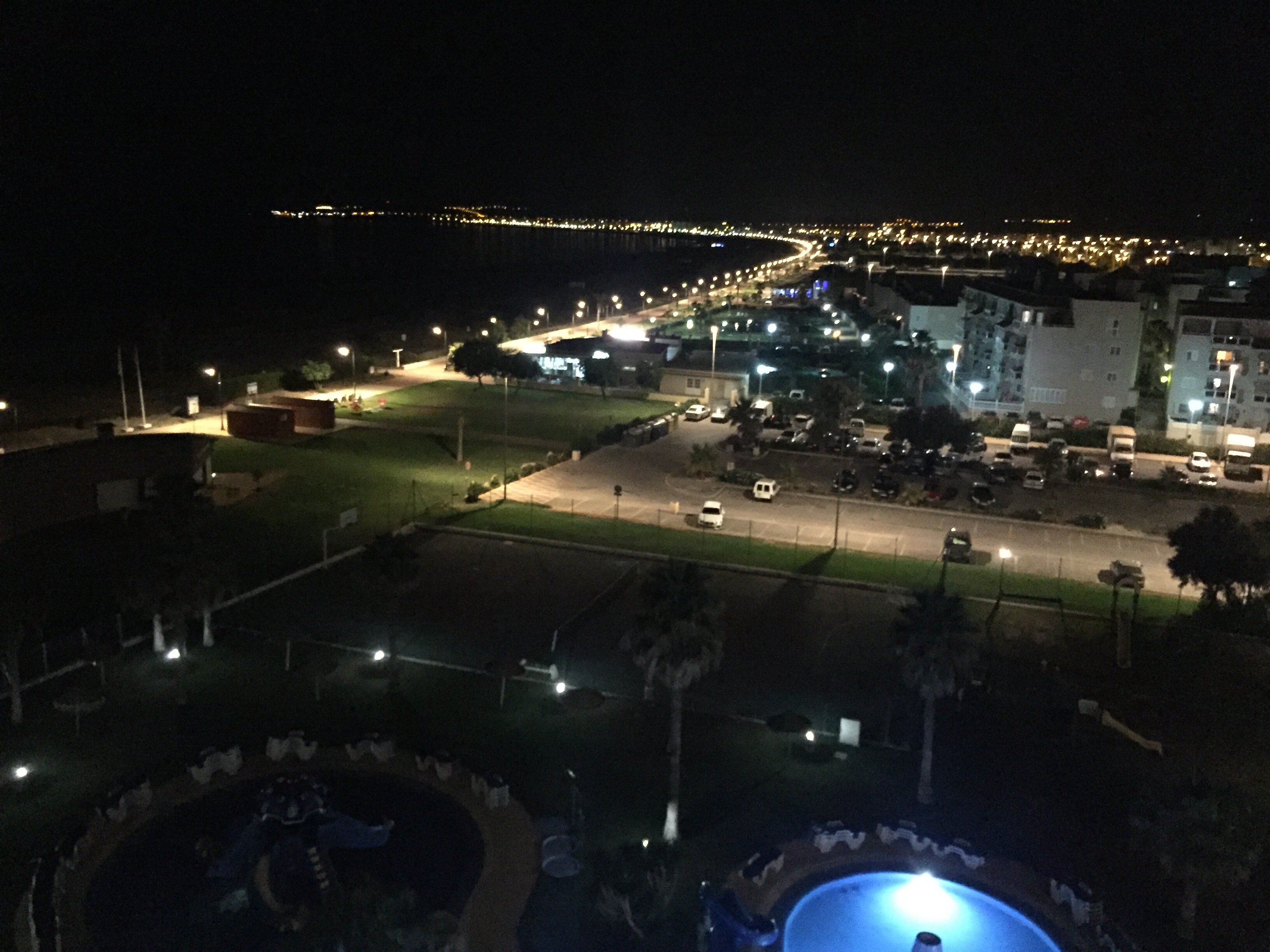 Sista kvällen och vi hittade en ”hemlig” trappa upp till taket på hotellet så här är en bild från poolområdet.