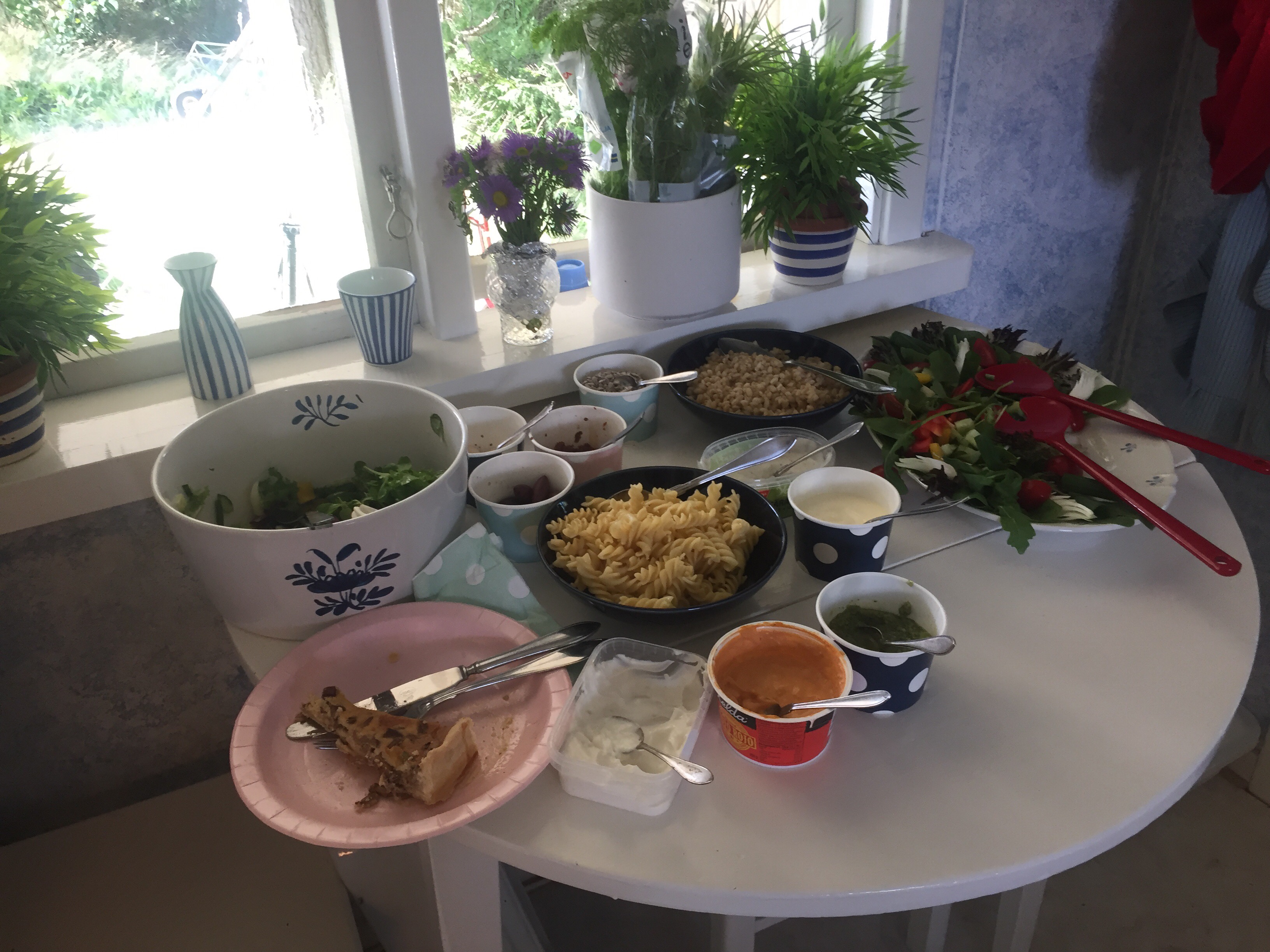 Sen hade vi knytis med paj och sallad. Annika hade gjort en kantarellpaj med nyplockade kantareller som var grym!