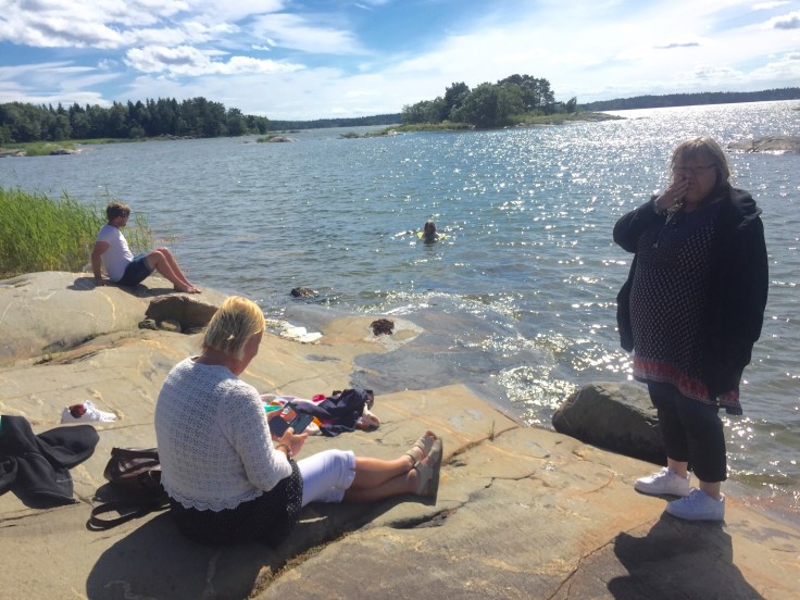 13.15 var vi framme på Sandviken. Där mötte tjocka släkten upp för att hjälpa pappa ut på ön. Han är otrolig min pappa! Han är värdens envisaste och har han bestämt sig för att ta sig över berget så gör han det, helst utan en massa trams om att stanna upp och vila på vägen som vi tjatar om😊 Han är min förebild i detta, vad hjälper det att klaga på saker man inte kan förändra, det är bara att göra det bästa man kan… och lite till. Jag älskar honom, min pappsen😘