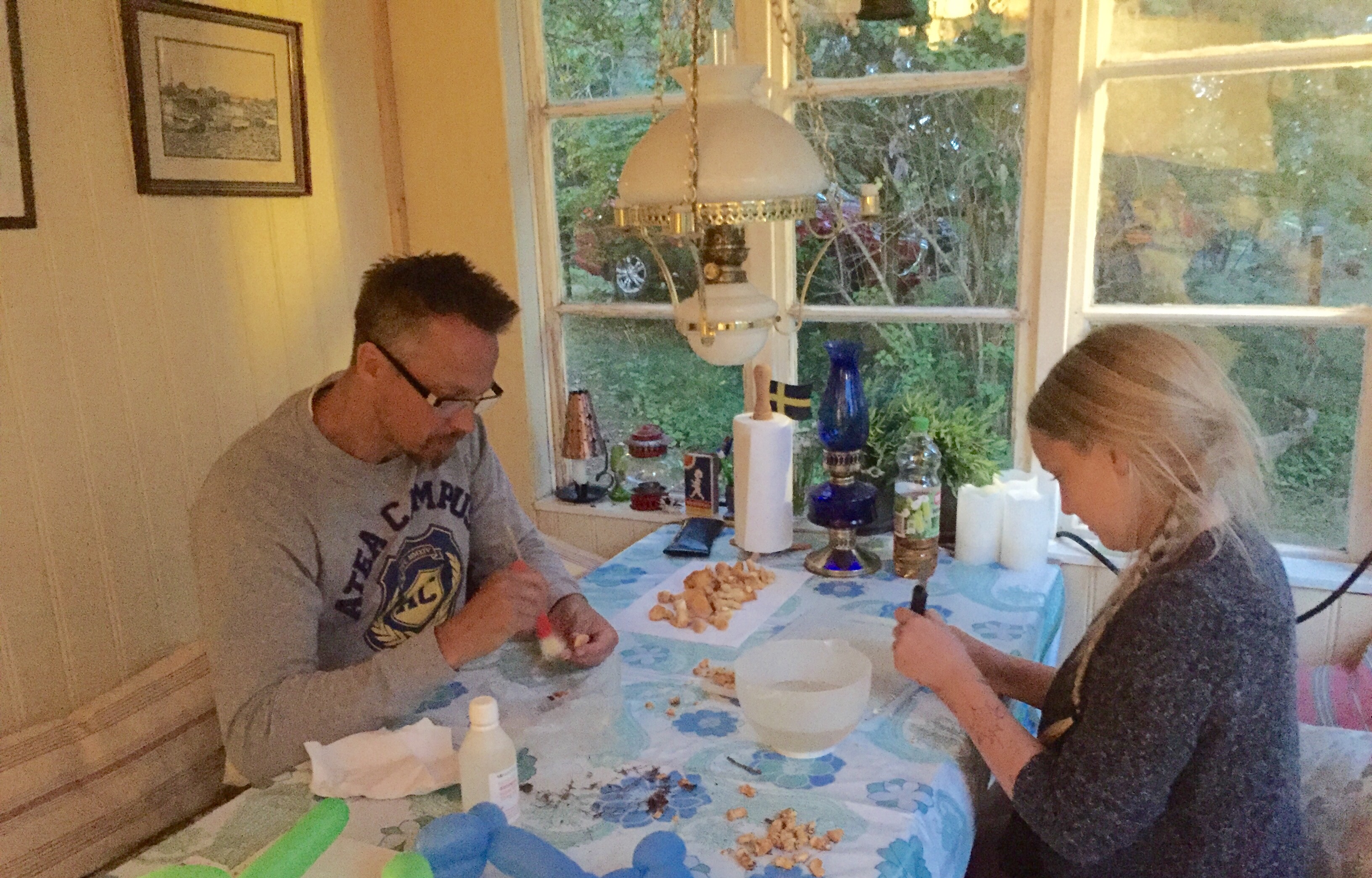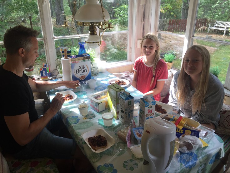 Lina och Isabella var ute och plockade kantareller i förrgår och hittade ganska mycket faktiskt. I går kväll satt Lina och rensade och rensade och rensade… mot slutet hoppade pappa in och hjälpte till.