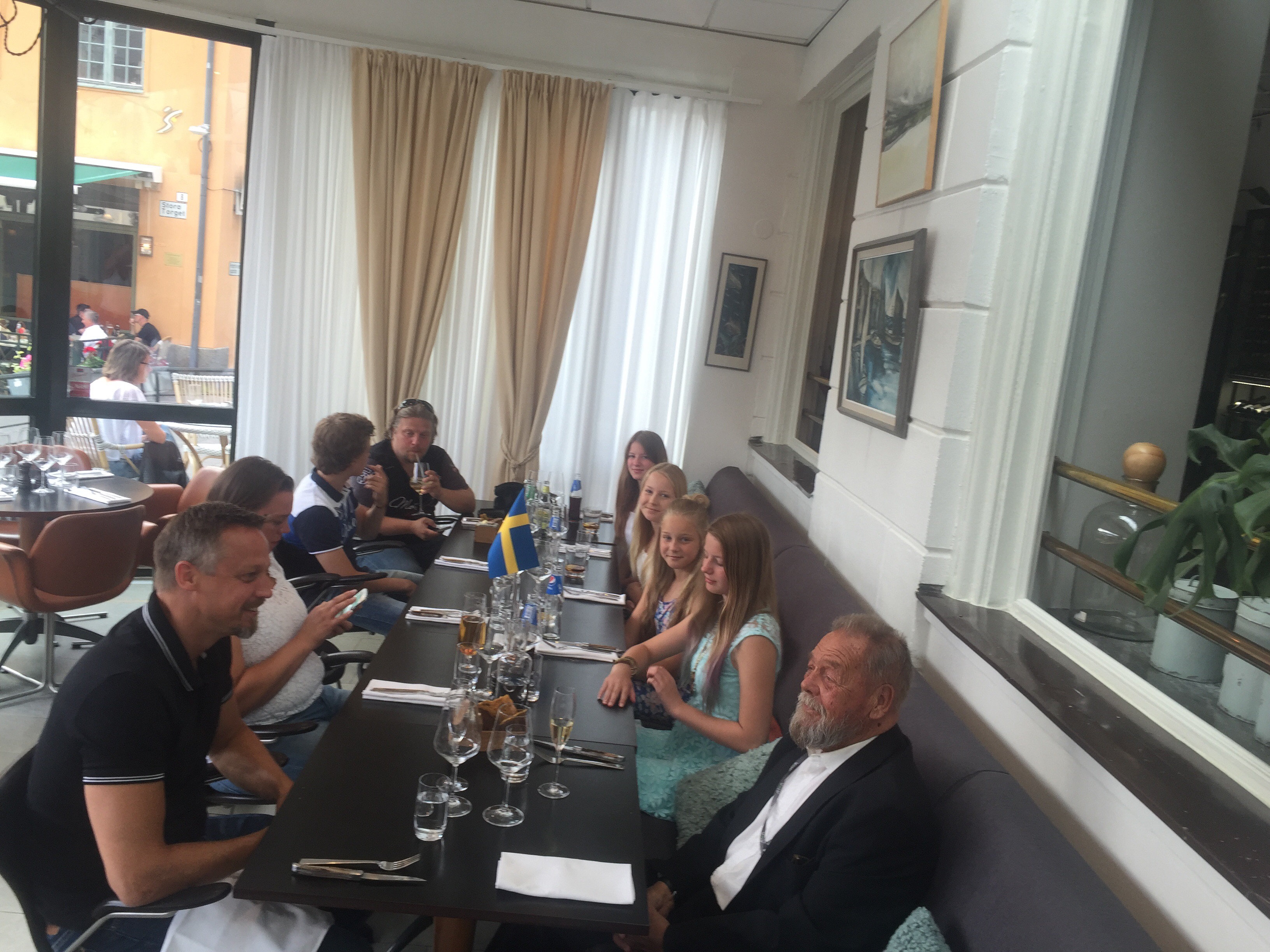 Inne i stan mötte vi upp med fam. Broström och Berra på Storan (Stora hotellet). Det blev en riktigt fin sommarkväll, varmt som tusan och riktigt mysigt!