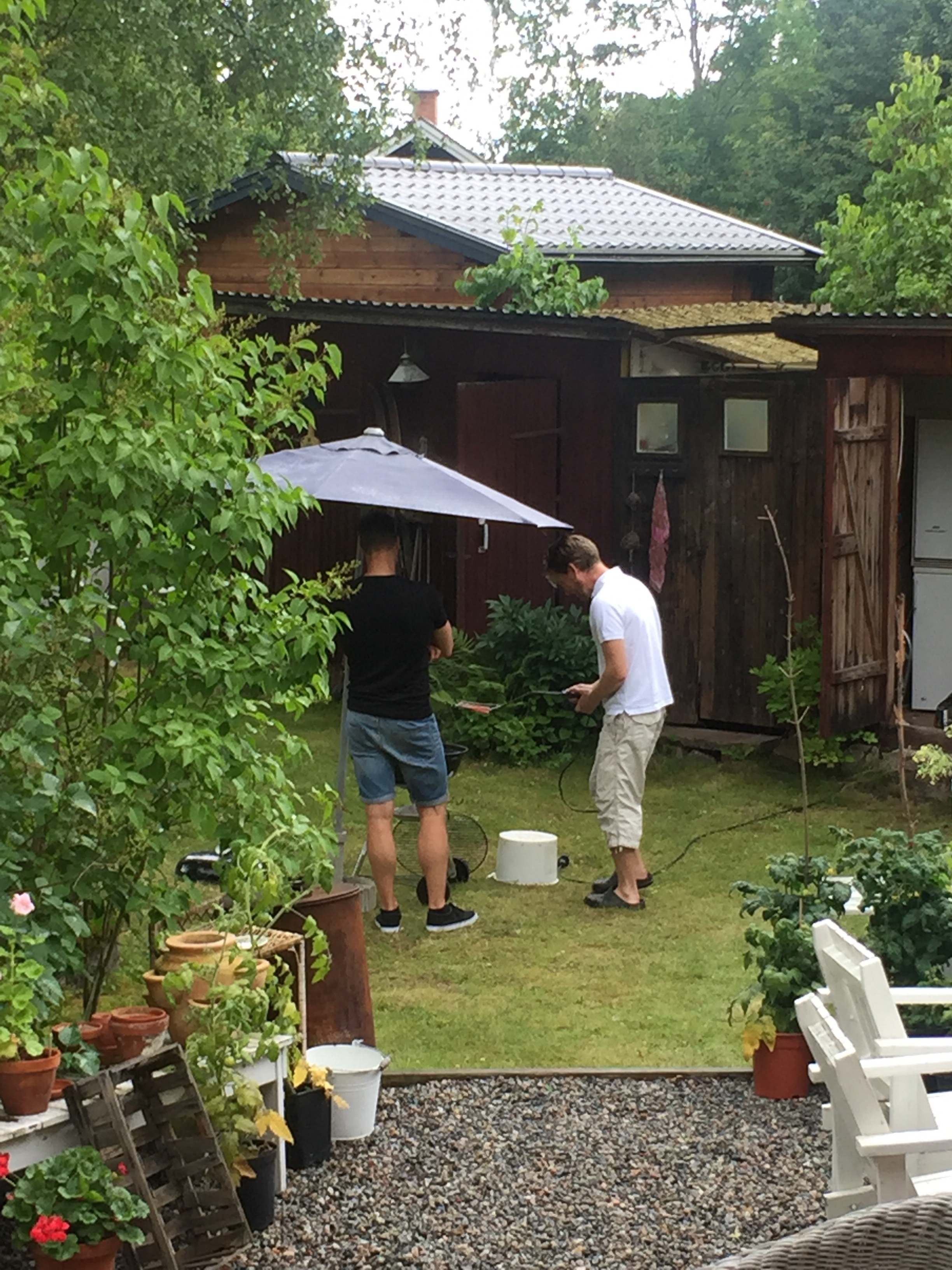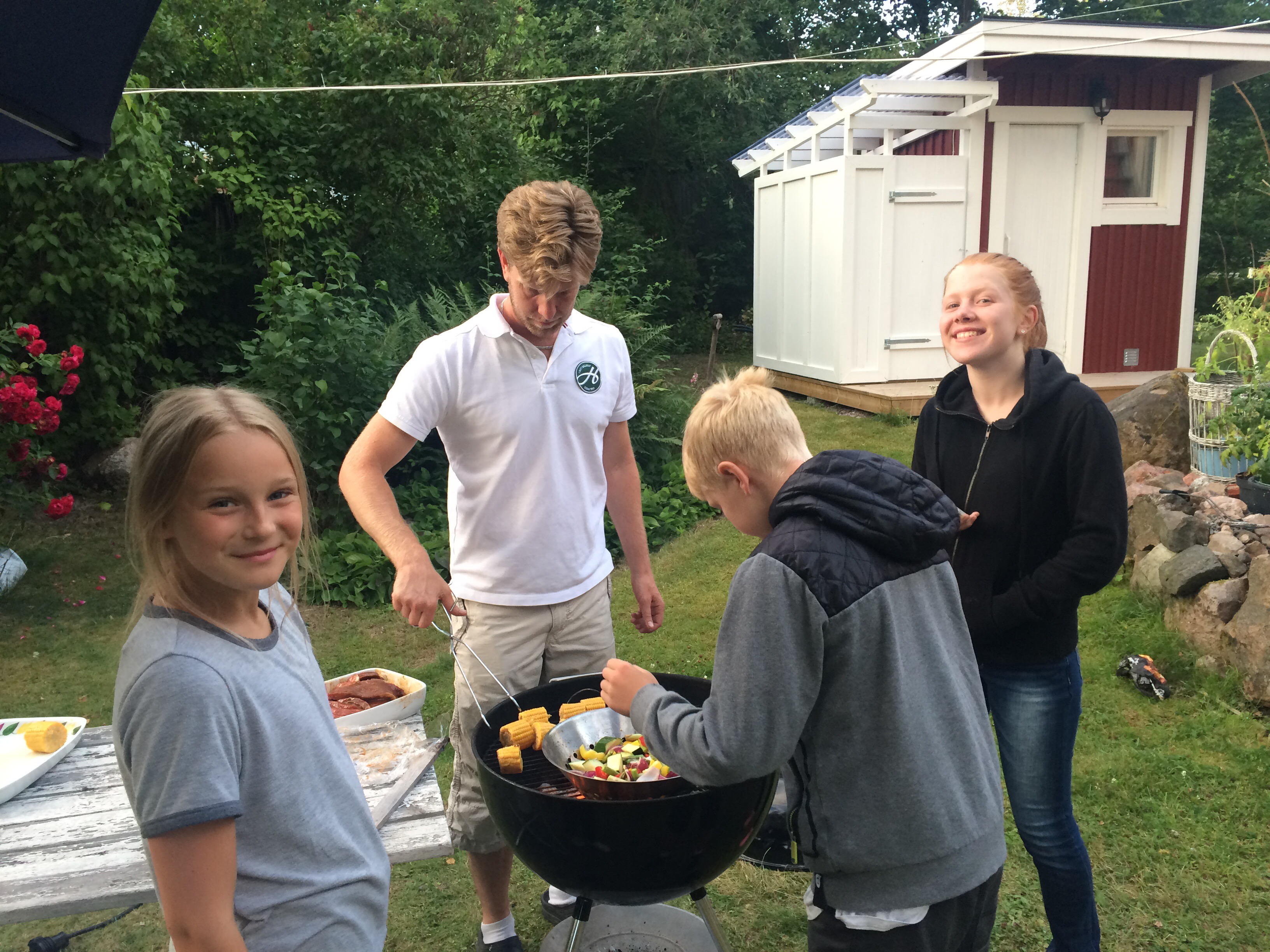 Förra året blev vi bjudna på värsta ovädret med hagel stora som 10-kronor! I år blev det inte lika farligt men lite regn kom det ändå när vi anlände, så det blev grillning under parasoll när vi kom och blev bjudna på hamburgerlunch😊