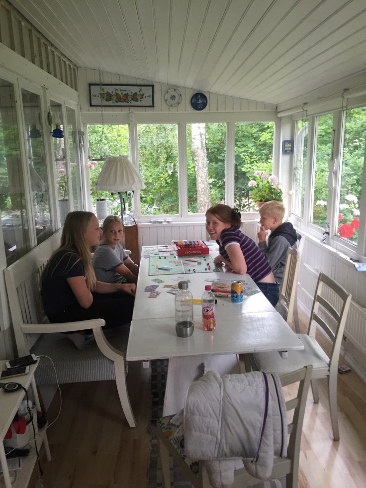 Tillbaka igen spelar barnen lite monopol.