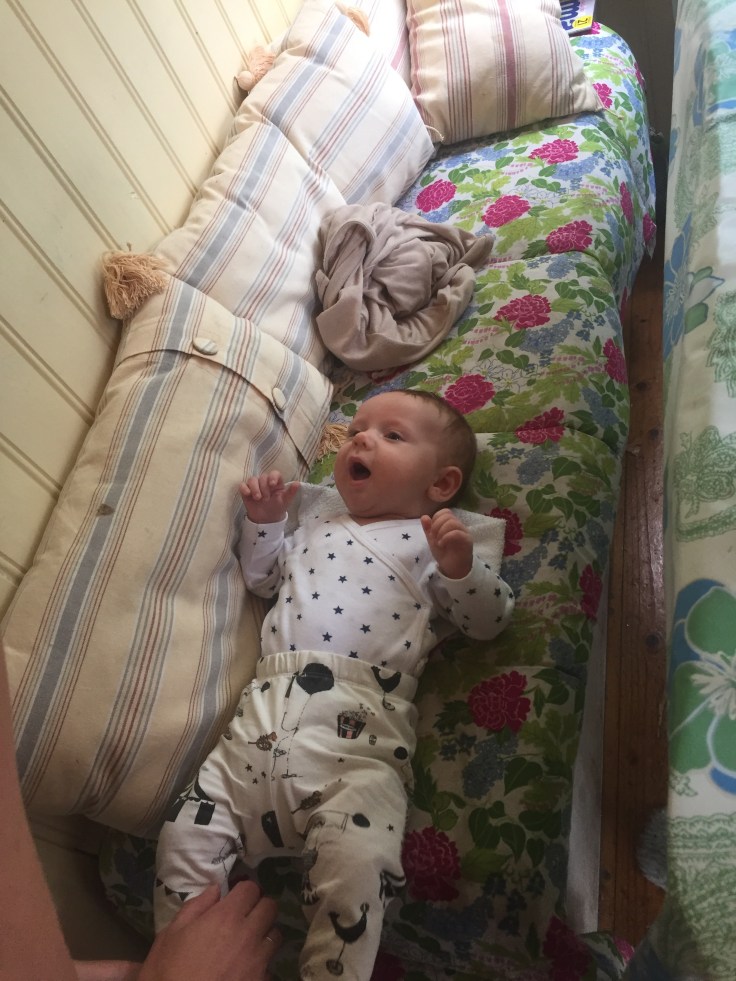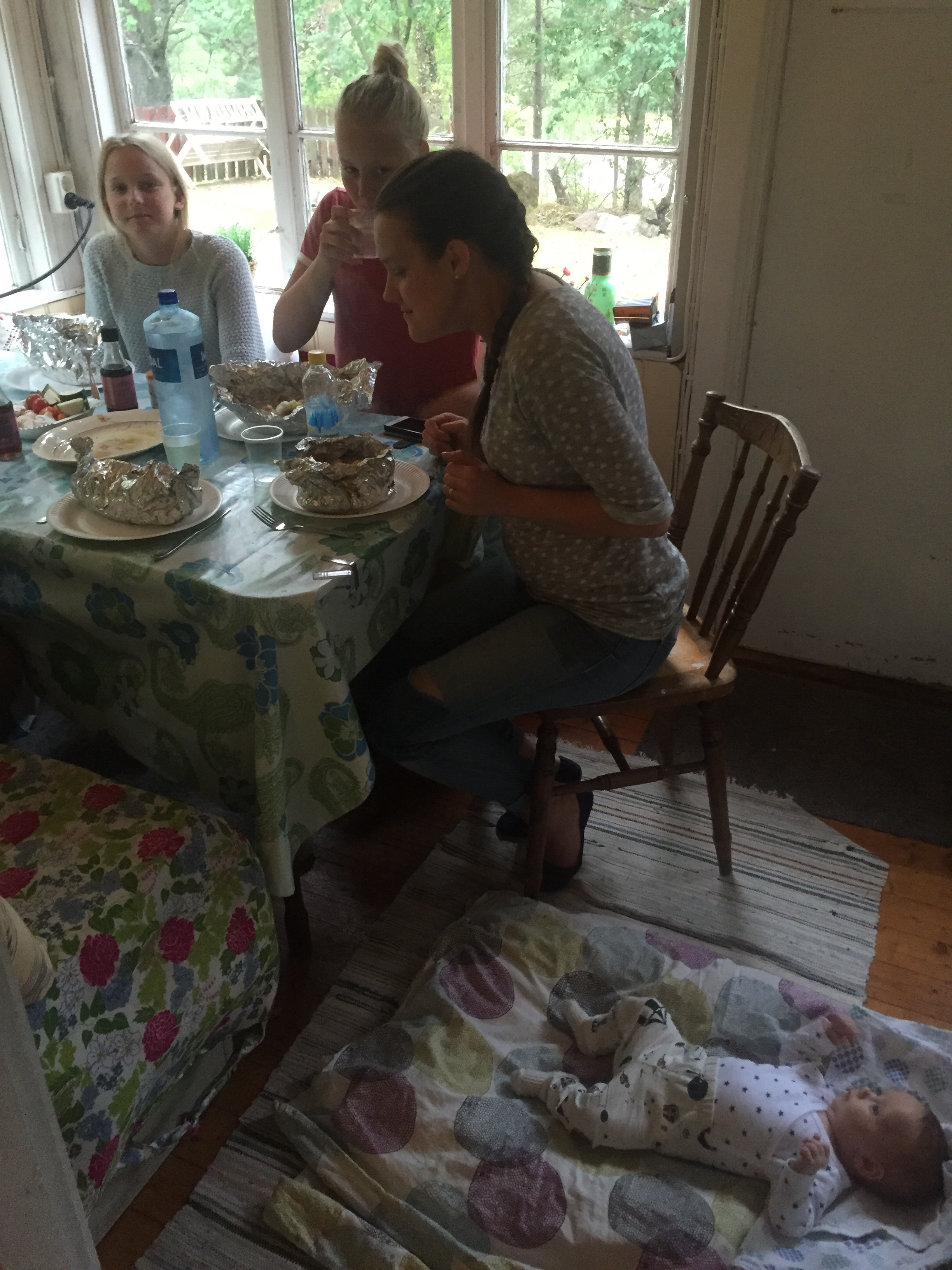 Axsel fick ta en liten siesta efter maten medan vi andra högg in i grillade folieknyten med fisk och grönsaker.